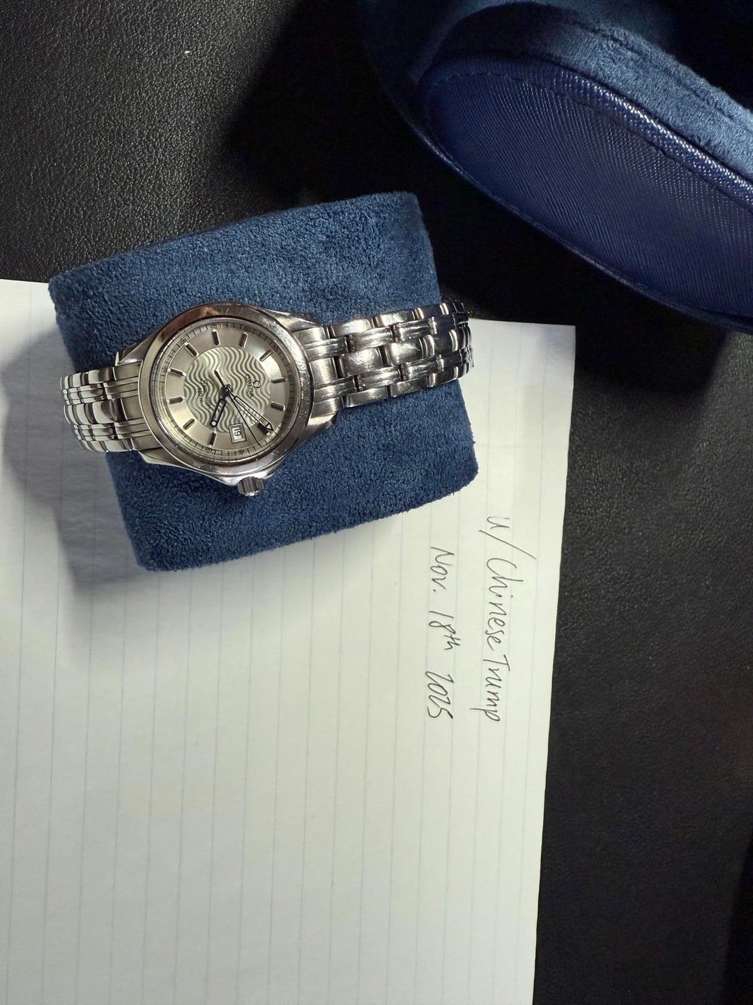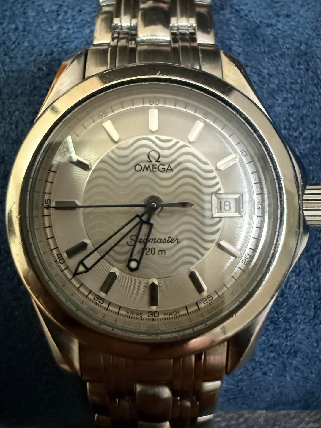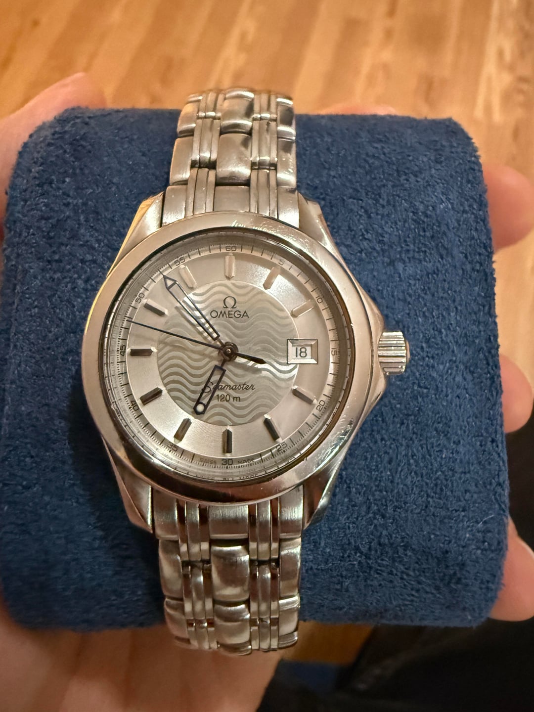 Selling a vintage Ladies Omega Seamaster Reference 2581.31, a classic diver watch with a beautiful white wave dial and stainless steel case. Condition is overall good, case has some scuffs from regular use and the crystal is excellent. Case measures 26mm in diameter and the bracelet is sized for a 5.8” wrist. Looking for $500 USD + shipping. I take payment via PayPal F&F or Crypto. Watch will be shipped in a protective blue watch roll (pictured in photo 2 with the timestamp). Feel free to reach out if you’d like any more photos or a video. Thanks! Crossposted on r/WatchExchangeCanada