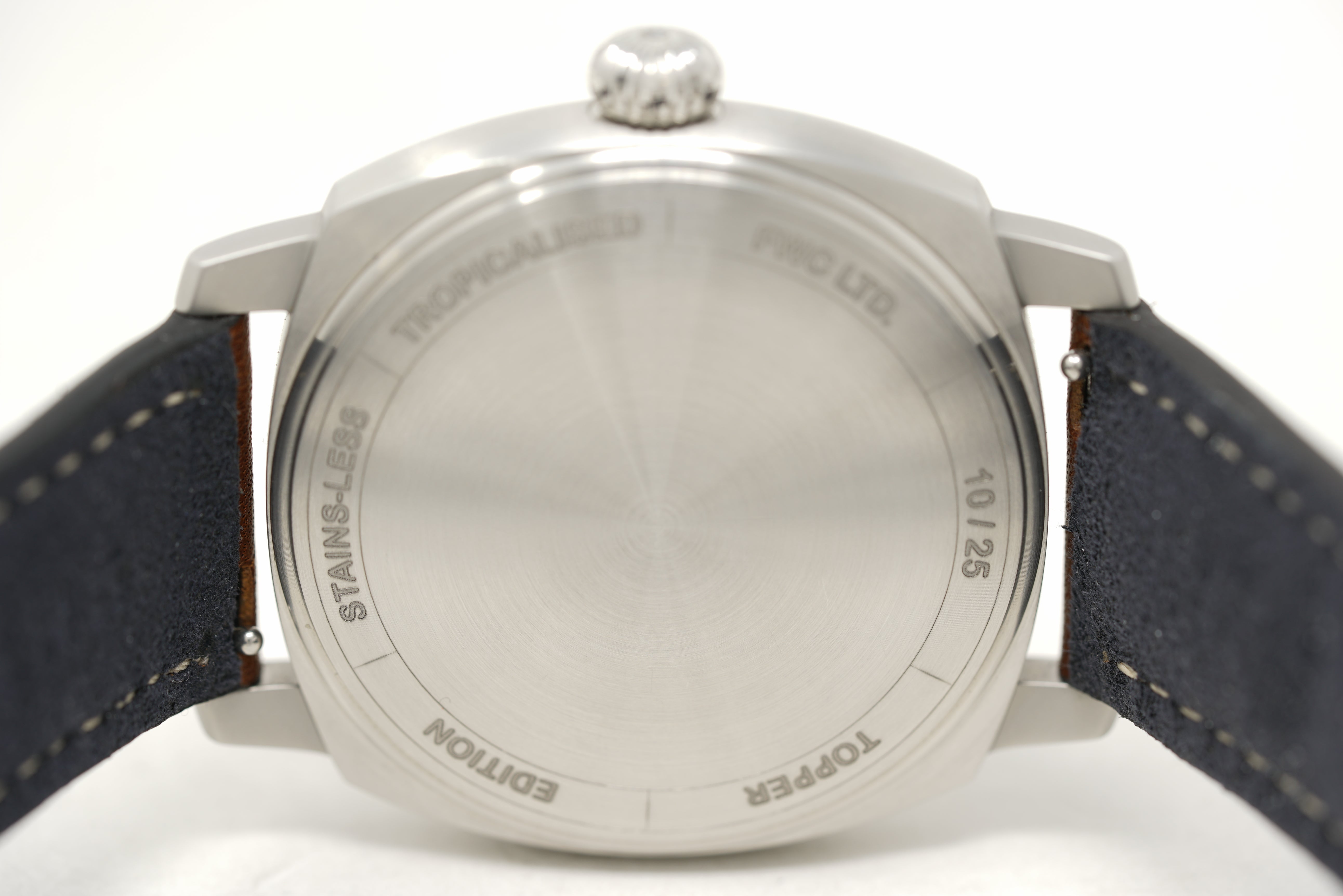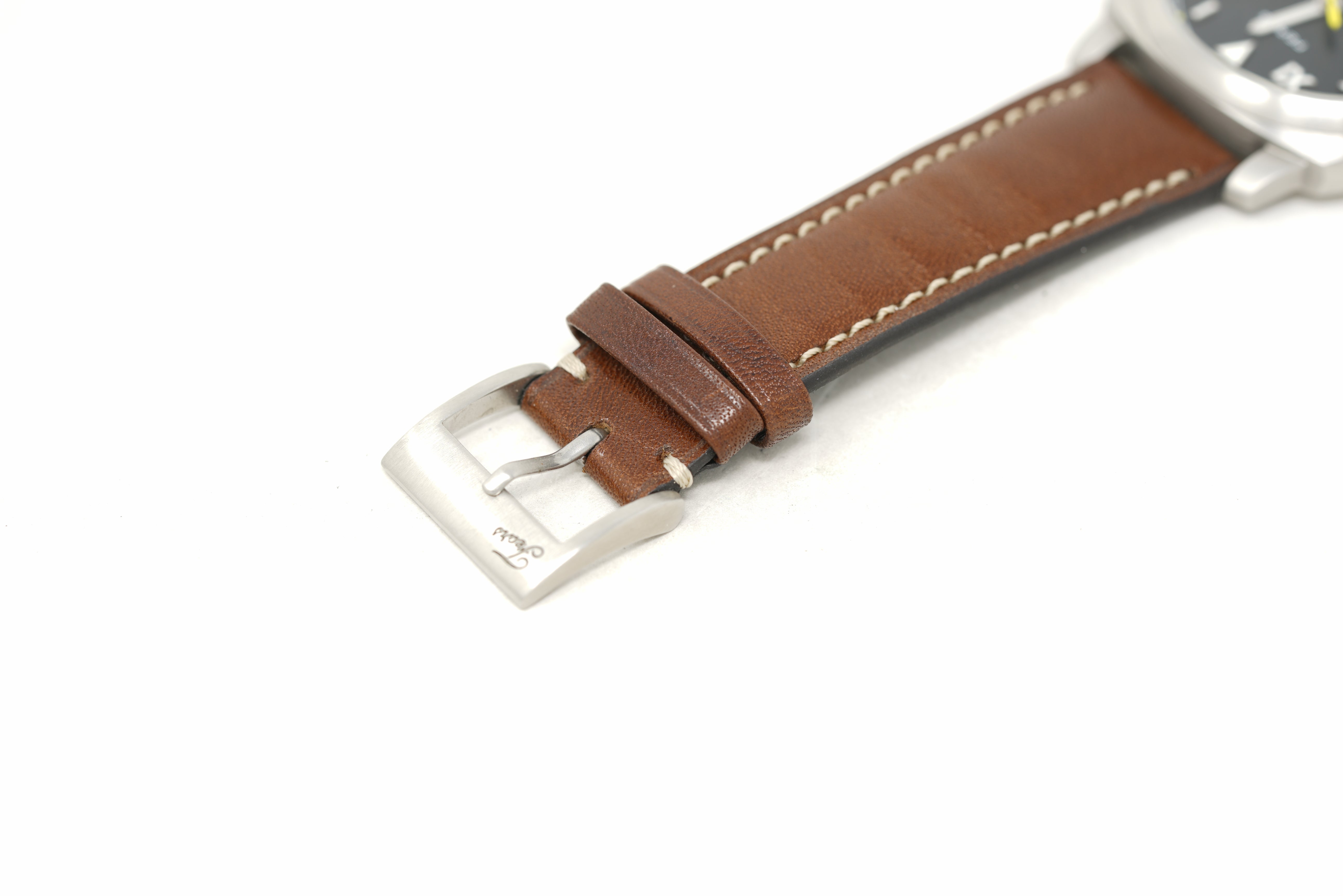 Limited to 25 pieces, this pre-owned watch is in 91% condition due to slight marks on the sides and back of the case. The strap is in 89% condition due to slight creasing and marks on the clasp. The strap will accommodate a wrist size up to 7 and 1/2 inches. Originally purchased in July 2022, this watch comes with its inner and outer box, instruction manual, warranty card, limited edition certificate, hangtag, and the one-year Topper Pre-Owned Select warranty.