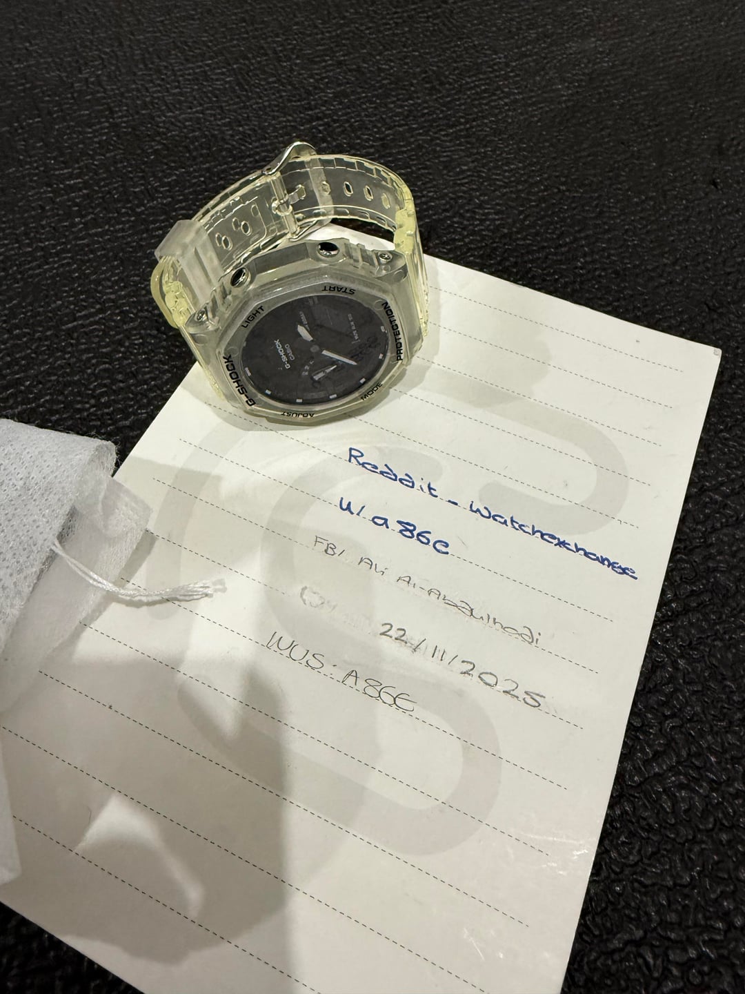 Hey all, GA-2100 with papers, box box. Overall very good condition Price: $100 shipped TYD via UPS with tracking Not interested in trades Please read the disclaimer before shooting a PM Thanks ⸻ Watch Sale Disclaimer: • I am a private collector, not a store or reseller, and I am not affiliated with any watch brand mentioned in this listing. • The watch will be shipped from Kuwait via FedEx, and a tracking number will be provided to the buyer once dispatched. • Buyer is responsible for any customs duties, VAT, or import taxes that may be charged upon delivery, depending on your country’s regulations. • I welcome all reasonable requests for additional information, including more photos and/or videos to verify the watch and its condition. • Payment terms: • Established Watchexchange members with verifiable feedback may pay via PayPal Goods & Services only, I do not accept Friends & Family nor Zelle • New or low-feedback users must pay via wire transfer. All watches are sold as-is, with details described to the best of my knowledge. Serious inquiries only, please. Thanks for looking