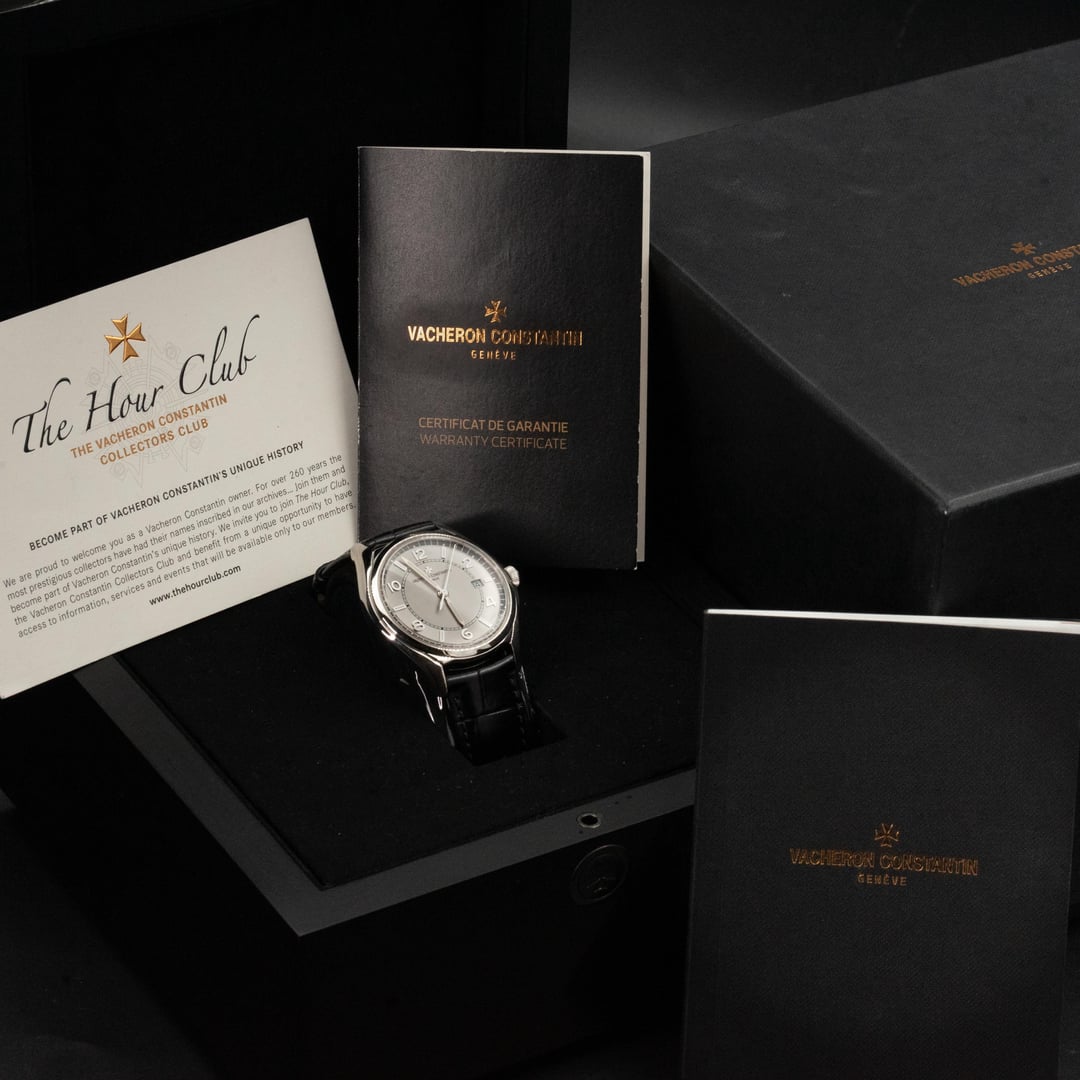 [WTS] 2019 Vacheron Constantin Fiftysix 40MM Silver Dial Leather Strap 4600E/000A-B442 The Vacheron Fiftysix is one of the most compelling entry points into the world of Vacheron Constantin — and into the Holy Trinity overall. The 40mm steel case, silver sector-inspired dial, and applied white gold markers deliver classic VC refinement in a format that’s modern, wearable, and far more approachable than most pieces from the brand. It’s a versatile, elegant watch that offers true high-horology pedigree without the usual barrier to entry. CONDITION Excellent pre-owned condition. Any marks visible in photos are dust or reflections from macro lighting. WHAT’S INCLUDED – Full set: inner and outer boxes, papers, booklets – Papers dated 2019 – OEM Vacheron Constantin black leather strap – OEM VC folding clasp 💲1️⃣0️⃣, 8️⃣9️⃣6️⃣ Shipped Overnight Fully Insured FedEx Ships from Austin, Texas; reputable dealer with references; happy to FaceTime for verification. Thanks for looking! Timestamp: https://imgur.com/a/vVVuIyV