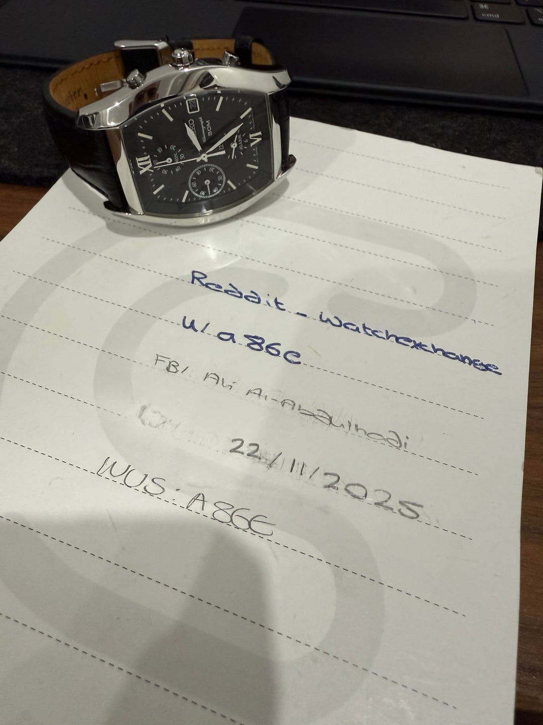 Hey all, Seiko chrono 50m, quartz, SNA733, 38 mm Watch is in good condition, used, strap is after market. Watch only Price: $175 shipped TYD via UPS with tracking Not interested in trades Please read the disclaimer before shooting a PM Thanks ⸻ Watch Sale Disclaimer: • I am a private collector, not a store or reseller, and I am not affiliated with any watch brand mentioned in this listing. • The watch will be shipped from Kuwait via FedEx, and a tracking number will be provided to the buyer once dispatched. • Buyer is responsible for any customs duties, VAT, or import taxes that may be charged upon delivery, depending on your country’s regulations. • I welcome all reasonable requests for additional information, including more photos and/or videos to verify the watch and its condition. • Payment terms: • Established Watchexchange members with verifiable feedback may pay via PayPal Goods & Services only, I do not accept Friends & Family nor Zelle • New or low-feedback users must pay via wire transfer. All watches are sold as-is, with details described to the best of my knowledge. Serious inquiries only, please. Thanks for looking