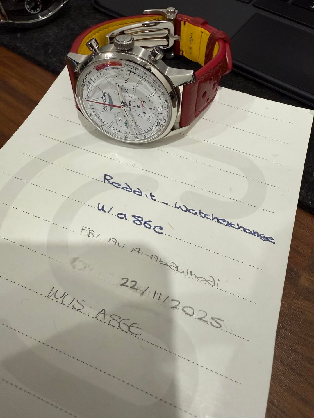 Hey all, On hand is the B01 Ford Thunderbird Breitling. Case and clasp in top condition, yellow part (inner) of the strap shows sign of wear Watch comes with all the paper work that I can pass onto the new owner and box Price: $4300 shipped TYD via UPS with tracking Not interested in trades Please read the disclaimer before shooting a PM Thanks ⸻ Watch Sale Disclaimer: • I am a private collector, not a store or reseller, and I am not affiliated with any watch brand mentioned in this listing. • The watch will be shipped from Kuwait via FedEx, and a tracking number will be provided to the buyer once dispatched. • Buyer is responsible for any customs duties, VAT, or import taxes that may be charged upon delivery, depending on your country’s regulations. • I welcome all reasonable requests for additional information, including more photos and/or videos to verify the watch and its condition. • Payment terms: • Established Watchexchange members with verifiable feedback may pay via PayPal Goods & Services only, I do not accept Friends & Family nor Zelle • New or low-feedback users must pay via wire transfer. All watches are sold as-is, with details described to the best of my knowledge. Serious inquiries only, please. Thanks for looking
