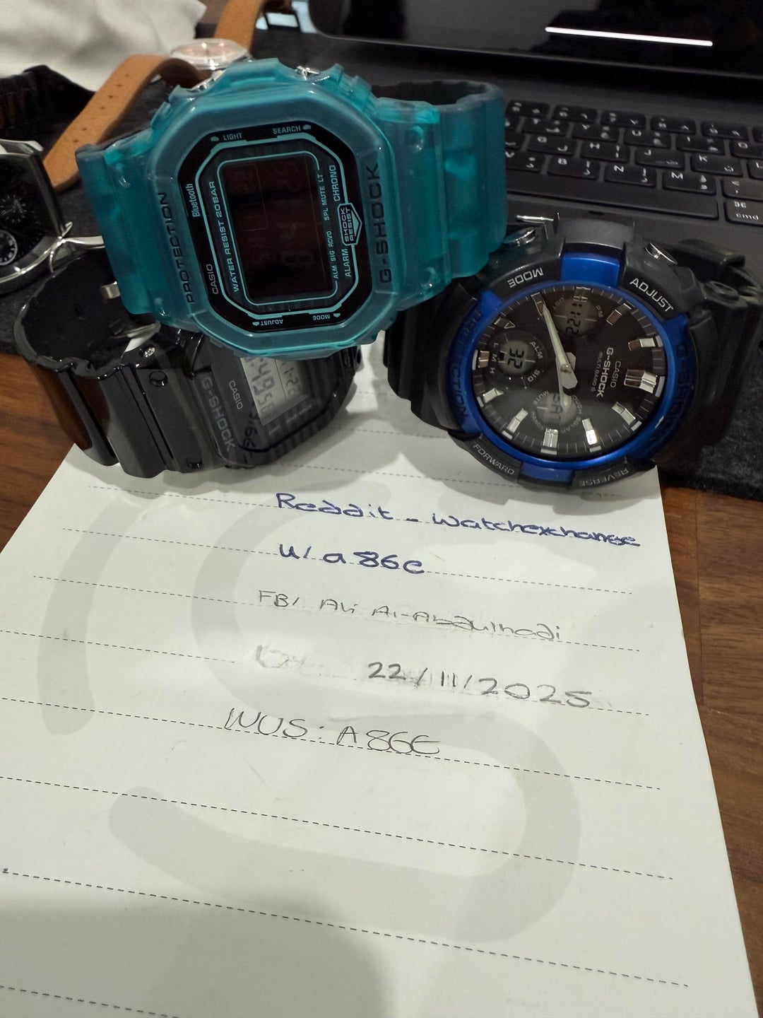 Hey all, Barely worn DW-B5600, watch only. No box Price: $145 shipped TYD via UPS with tracking Not interested in trades Please read the disclaimer before shooting a PM Thanks ⸻ Watch Sale Disclaimer: • I am a private collector, not a store or reseller, and I am not affiliated with any watch brand mentioned in this listing. • The watch will be shipped from Kuwait via FedEx, and a tracking number will be provided to the buyer once dispatched. • Buyer is responsible for any customs duties, VAT, or import taxes that may be charged upon delivery, depending on your country’s regulations. • I welcome all reasonable requests for additional information, including more photos and/or videos to verify the watch and its condition. • Payment terms: • Established Watchexchange members with verifiable feedback may pay via PayPal Goods & Services only, I do not accept Friends & Family nor Zelle • New or low-feedback users must pay via wire transfer. All watches are sold as-is, with details described to the best of my knowledge. Serious inquiries only, please. Thanks for looking