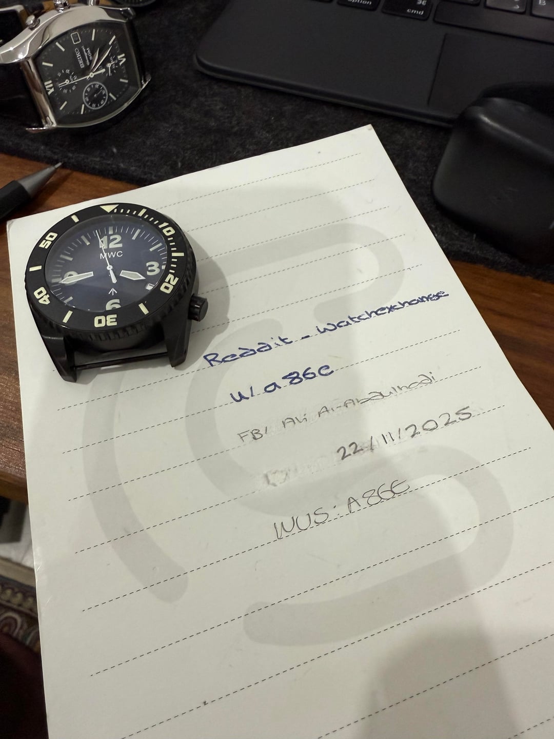 Hey all, I have this tank of a watch, the MWC Depthmaster. NATO is clean, comes with box too. Has a mark on the bezel.but nothing Major. Overall it's a clean example as shown by the pictures. Retails at $660 Specs: Movement: 24 Jewel Automatic NH35A with hacking function and a 41-hour power reserve Water Resistance: 100ATM / 3,280ft / 1000M Crown: Screw-down locking Helium Escape Valve: Yes Dimensions: Width: Including Crown 47mm (Excluding Crown 44mm) Thickness: 18mm Crystal Diameter: 31mm Lug to Lug: 48mm Weight: 140g Bezel: Unidirectional non-reflective with ceramic insert Crystal Type: Sapphire with Anti-Reflective Coating* Case: 316L PVD Stainless Steel Illumination: Luminova on markers, hands, and bezel Strap: 24mm NATO Webbing Strap Price: $475 shipped TYD, loosely negotiable Not interested in trades Please read the disclaimer before shooting a PM Thanks ⸻ Watch Sale Disclaimer: • I am a private collector, not a store or reseller, and I am not affiliated with any watch brand mentioned in this listing. • The watch will be shipped from Kuwait via FedEx, and a tracking number will be provided to the buyer once dispatched. • Buyer is responsible for any customs duties, VAT, or import taxes that may be charged upon delivery, depending on your country’s regulations. • I welcome all reasonable requests for additional information, including more photos and/or videos to verify the watch and its condition. • Payment terms: • Established Watchexchange members with verifiable feedback may pay via PayPal Goods & Services only, I do not accept Friends & Family nor Zelle • New or low-feedback users must pay via wire transfer. All watches are sold as-is, with details described to the best of my knowledge. Serious inquiries only, please. Thanks for looking