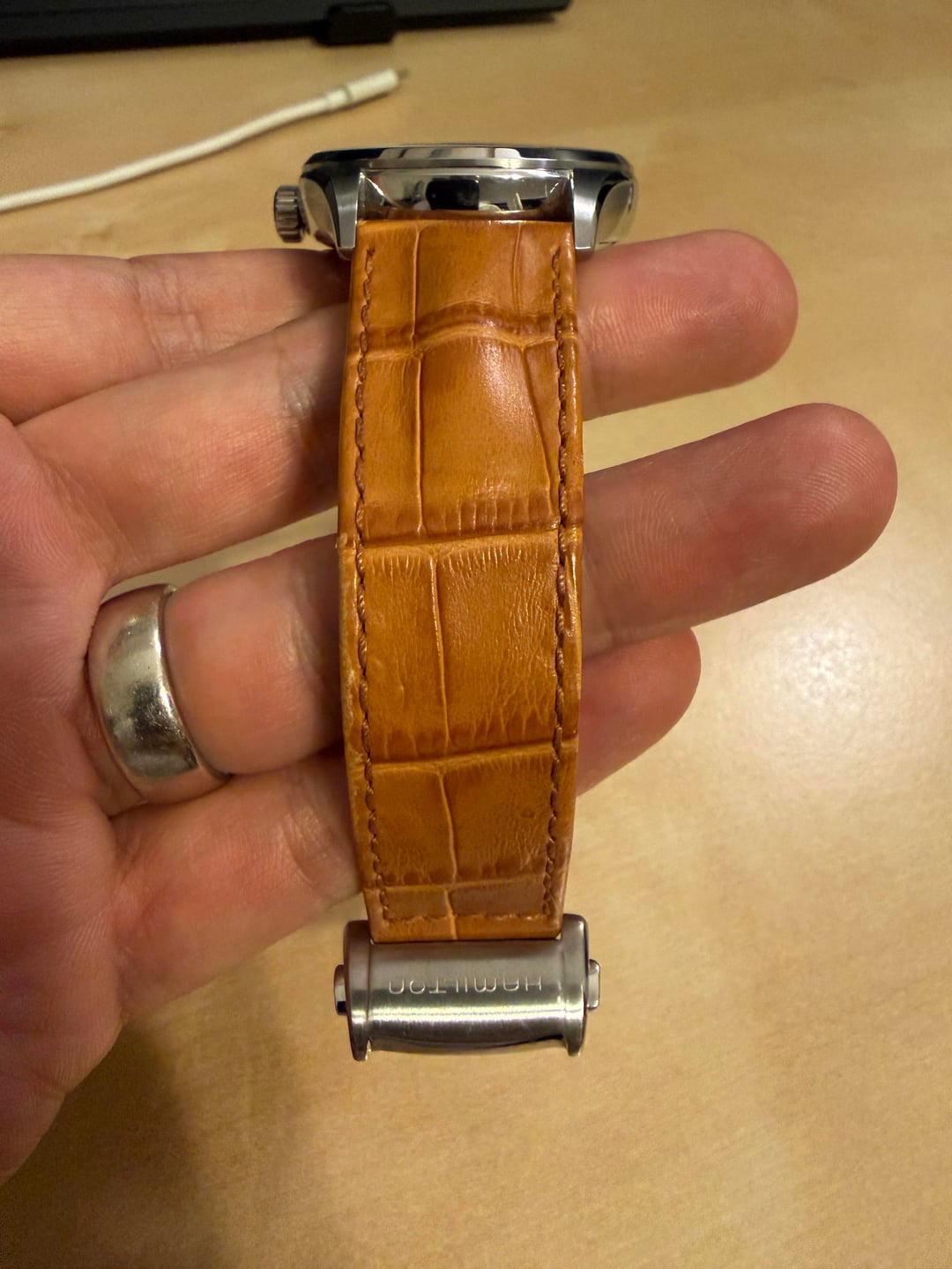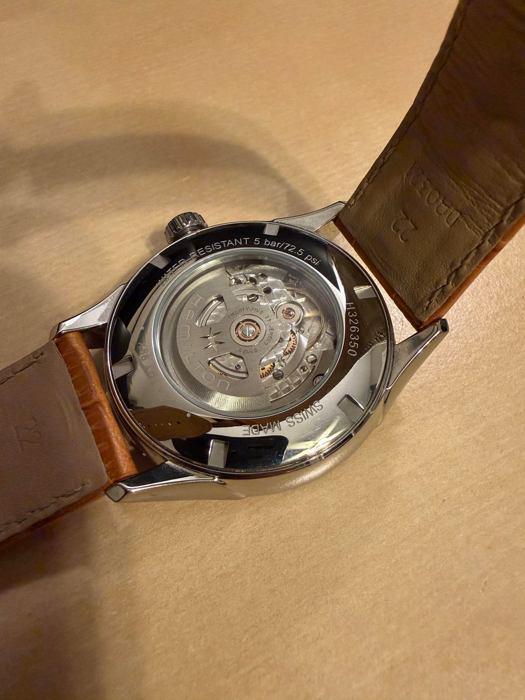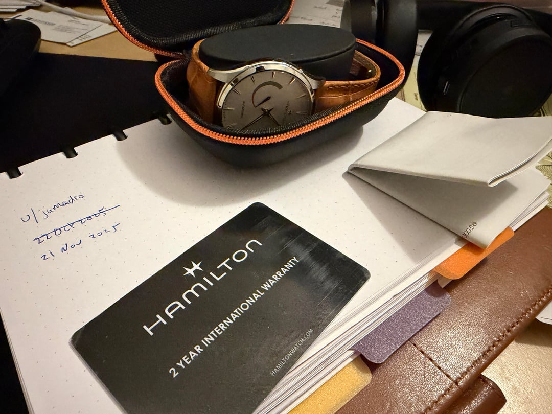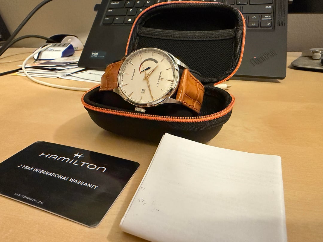 Price: $500 USD (includes CONUS USPS Priority Mail shipping). Payment via Zelle, PayPal G&S (buyer accepts fees). No trades. Condition: Excellent- 9.5/10. I purchased this watch June 2024 and has been my work travel companion across the USA. It has been well loved and taken care; never dropped or hit. Only worn in professional settings. The leather strap is original and very nice quality. It’s been broken in but otherwise is undamaged and appears new. Clasp and buckle show no signs of wear. Sapphire crystal is flawless. The case is immaculate. It’s keeping great time and is typically a few seconds fast per day. What's Included: Full kit. This includes the watch on its original strap, the travel case, paperwork, and original warranty card. It is still under official 2 year international warranty and is valid until June 2026. Why I'm Selling: It’s not getting wrist time anymore. Another watch has taken over its role and I’d love to see this go to someone who will continue to elevate their attire with this beautiful watch! Details: Model: Hamilton Jazzmaster H32635511 Dial Color: White Movement: Hamilton H-13 80 hour power reserve Case Size: 42mm Lug-to-Lug: 50mm Thickness: 12.64mm Lug Width: 22mm Crystal: Sapphire with anti-reflective coating Water Resistance: 50 meters Strap: Light brown calf leather with fold over deployant clasp. Reference H6003261171. Feel free to ask any questions. Thanks for looking!