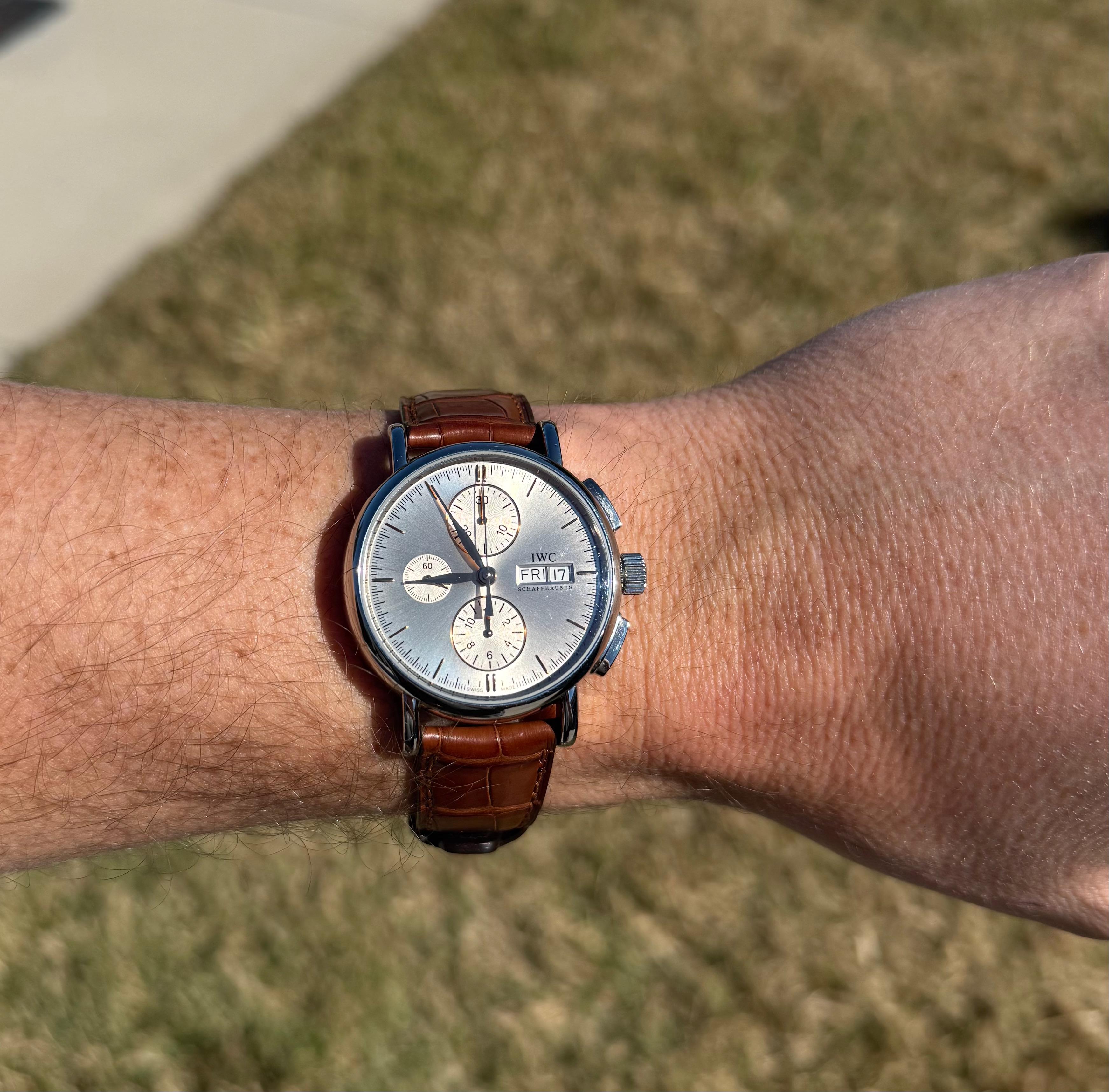 Photos, video, and timestamp - [https://imgur.com/a/CK8lAEj](https://imgur.com/a/CK8lAEj) In excellent condition and running perfectly. Date, day, and chronograph all run fantastic. Condition is 9.5/10. Watch was serviced by IWC in 2022, but I do not have the paperwork. Asking $3250 shipped Happy to facetime or answer any questions