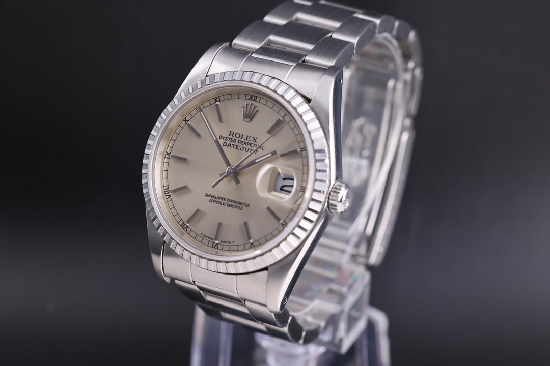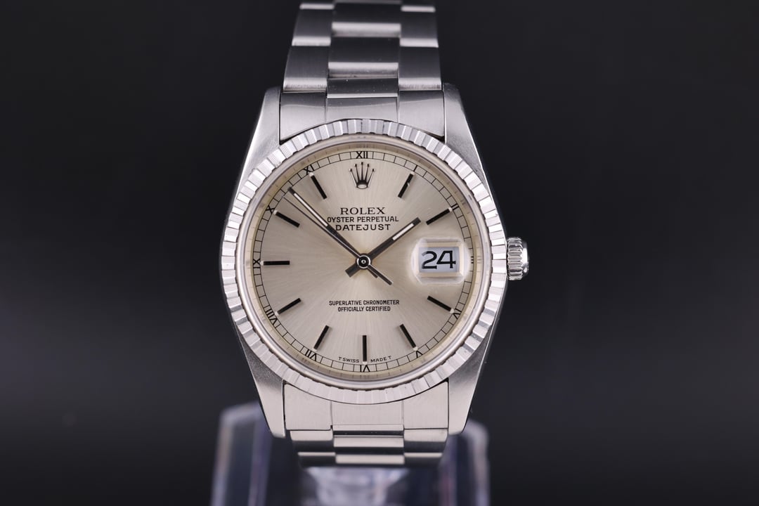| Rolex Datejust 36mm Silver Dial Stainless Steel Oyster Bracelet 16220 - 1991 watchlimit (692) |