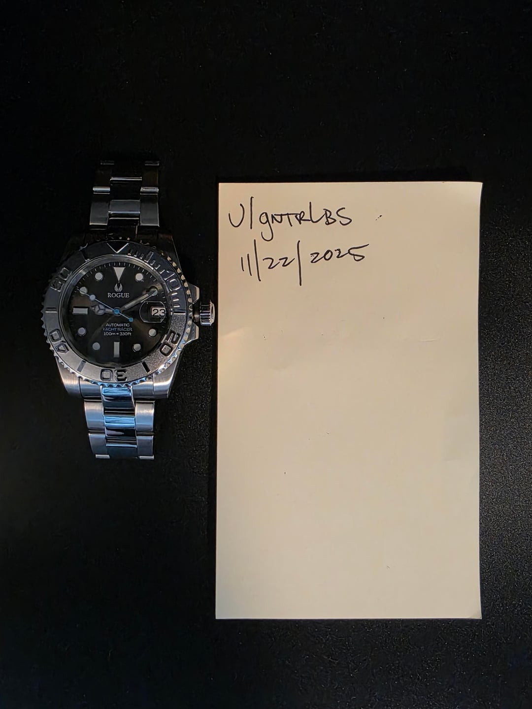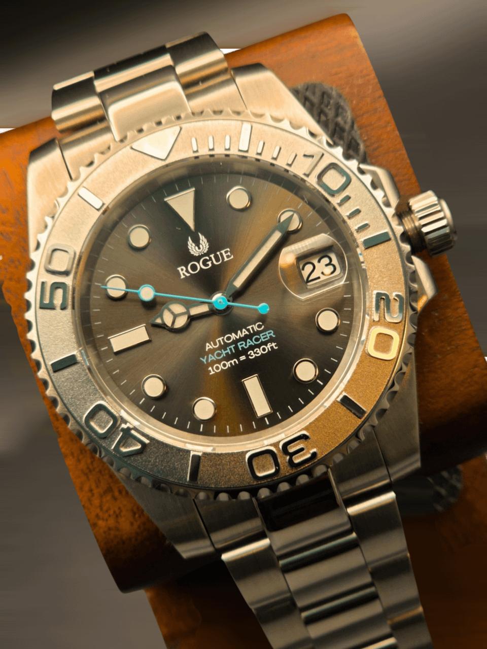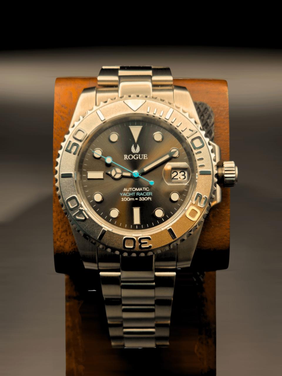 Hi Watch Exchange! Selling my Silver Yacht Racer from Rogue Watches . Doesn't get much wrist time so hoping to pass it along to someone else who would enjoy it.  Its very nicely built and a really good looking Yacht master homage.  Comes with travel case and extra links. Currently sized for a 6.75 in wrist.  MSRP: $398 Selling for : $300 with insured shipping within the U.S.  Payment: Zelle, Venmo, or Paypal F&F 41mm brushed/polished stainless steel case 120 click Uni-Directional bezel Case: 41mm Lug Width: 20mm Lug to Lug: 47mm Flat sapphire crystal  Automatic Japanese Seiko NH35 Power Reserve: 41 Hours Hacking and hand winding  Rated to 100m (330ft)