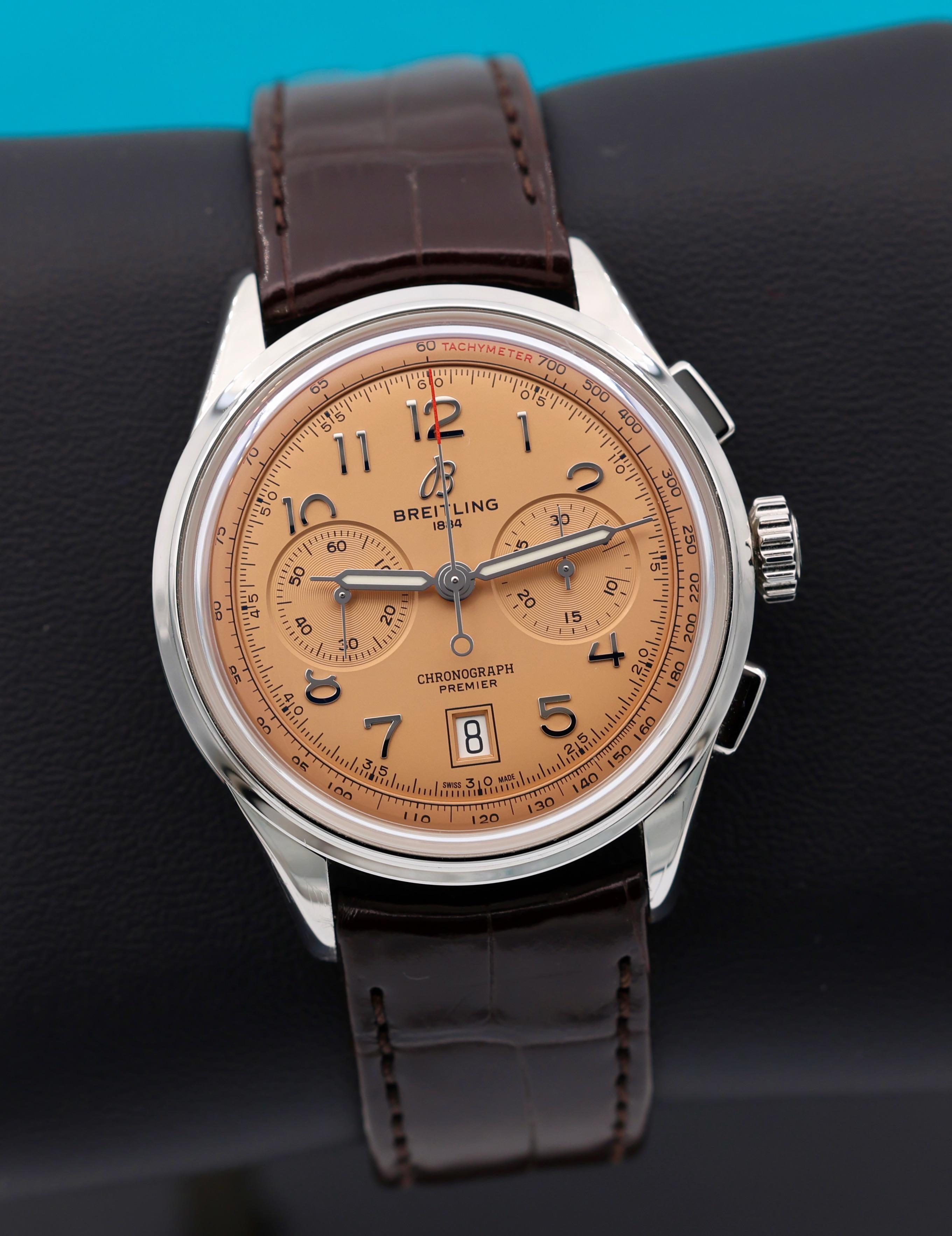 Hello All - I am putting for sale - Breitling Premier. 42mm. Salmon Dial. Box and papers. 📷 More Pics: https://www.dropbox.com/scl/fo/l05k5qd1r8wnhs64an6dh/AAANtI-yWRy1ywqQUxJEtTc?rlkey=gely3mws8btate8bh4picivib&st=bso3hkqd&dl=0 📆 Timestamp: https://www.dropbox.com/scl/fi/lovo124igcr6sjsevszcz/Photo-Nov-22-2025-7-19-00-PM.jpg?rlkey=iz6blbx1gcpsg5tayua2a1ib3&st=0hxf5xrc&dl=0 I am asking $4950 + shipping . Watch located in NJ USA. All my listings here: https://www.watchrecon.com/?query=watchex_enterprises&last_days=0 watchex_enterprises - WatchRecon I am very comfortable doing a facetime to show the watch if needed. Please PM me for any questions that you may have. I am certain it will go to a good home. Thanks for looking. ** 🛡️Buy with Confidence!! 600+ references. ** ⭐️Checkout my profile for other amazing watches. ** 📦All packages are shipped Fedex with insurance. ** 🌎Shipping accepted globally.