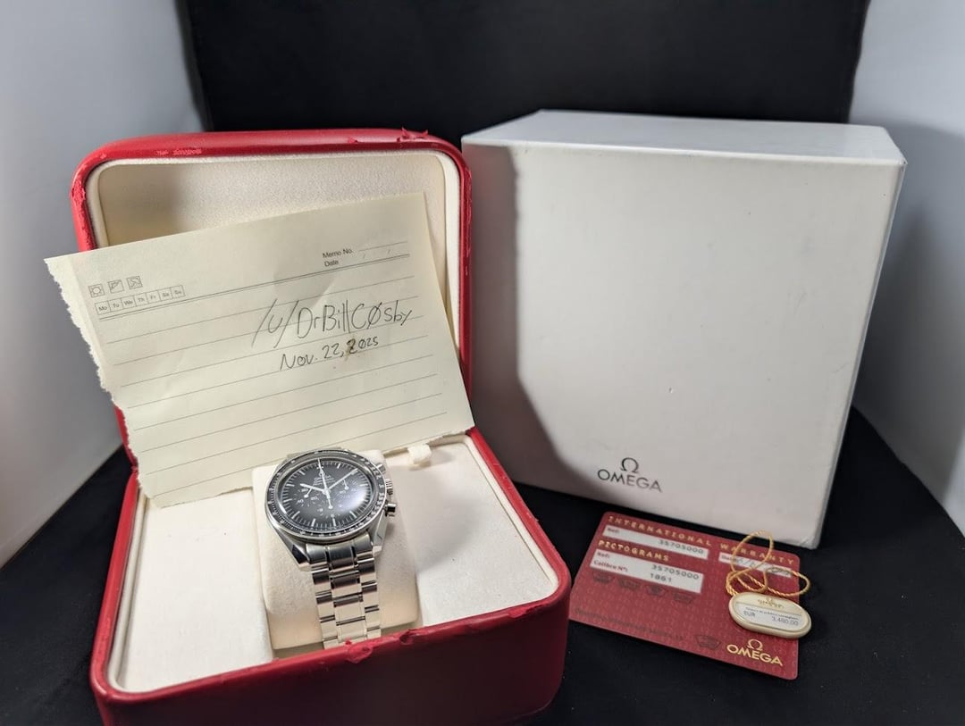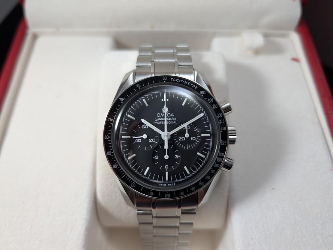 Hey WatchExchange! Up for your consideration is an Omega Speedmaster Professional. **Ref Number: 3570.50.00** This piece is in overall mint cosmetic condition, showing NO signs of use. The crystal is flawless, and the bezel is in excellent shape. The metal through the watch is perfect; I am unsure if the watch was refinished, but given that the watch is 11 years old (the warranty card is dated 2014), it’s a possibility. Nevertheless, as you can see in my photos, the watch appears to be in unworn condition. The dealer I picked this up from disclosed that it was serviced last month (October 2025) and comes with a 1-year warranty. **Scope of Delivery**: \- Watch + Inner Box + Outer Box + Papers + Hang Tag \- Shipping: I will ship the day of or the day after payment is cleared. Shipping will be via FedEx 2 day, fully insured, and signature required at a nearby Fedex facility. Overnight shipping is available if requested. I aim to be as transparent as humanly possible in all transactions and would absolutely love to do a FaceTime or regular voice call to any interested parties. I have many references for buying and selling luxury timepieces off of reddit. I’ll be more than happy to share them with serious buyers! **Price: $4950 + Shipping (CA residents subject to 9.75% sales tax)** Payment via wire before shipping. F2F in SoCal is strongly encouraged! Trades will be considered, but as I'm primarily looking to fund another purchase will need to have the trade value skewed in my favor. If you've made it this far, thank you for your time and consideration.