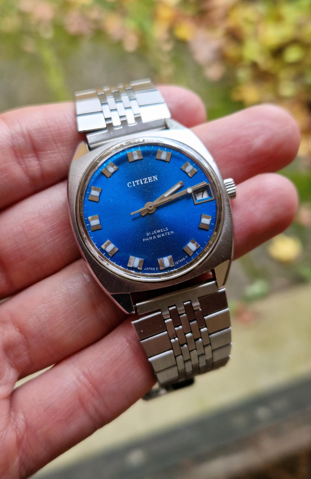 Offering up this vintage Citizen Parawater wristwatch. Good condition with unblemished, stunning blue dial. Manual wind Cal 1800-series movement. Watch is in running condition and keeps decent time. Diameter is 36mm with crown. Also open to offers, feel free to DM me.