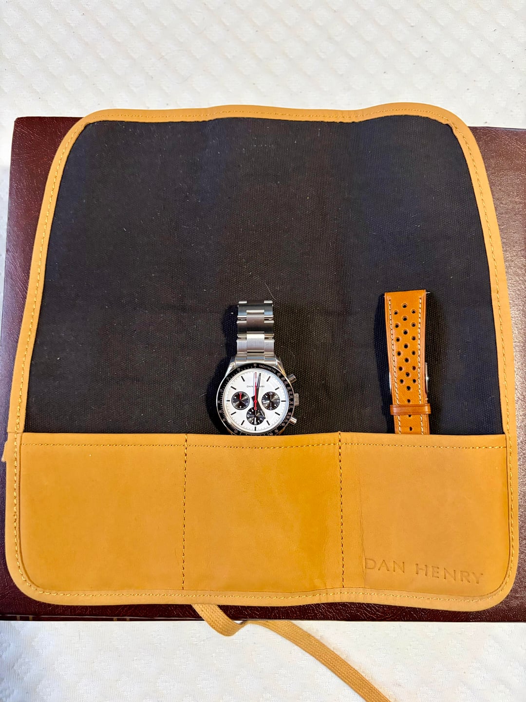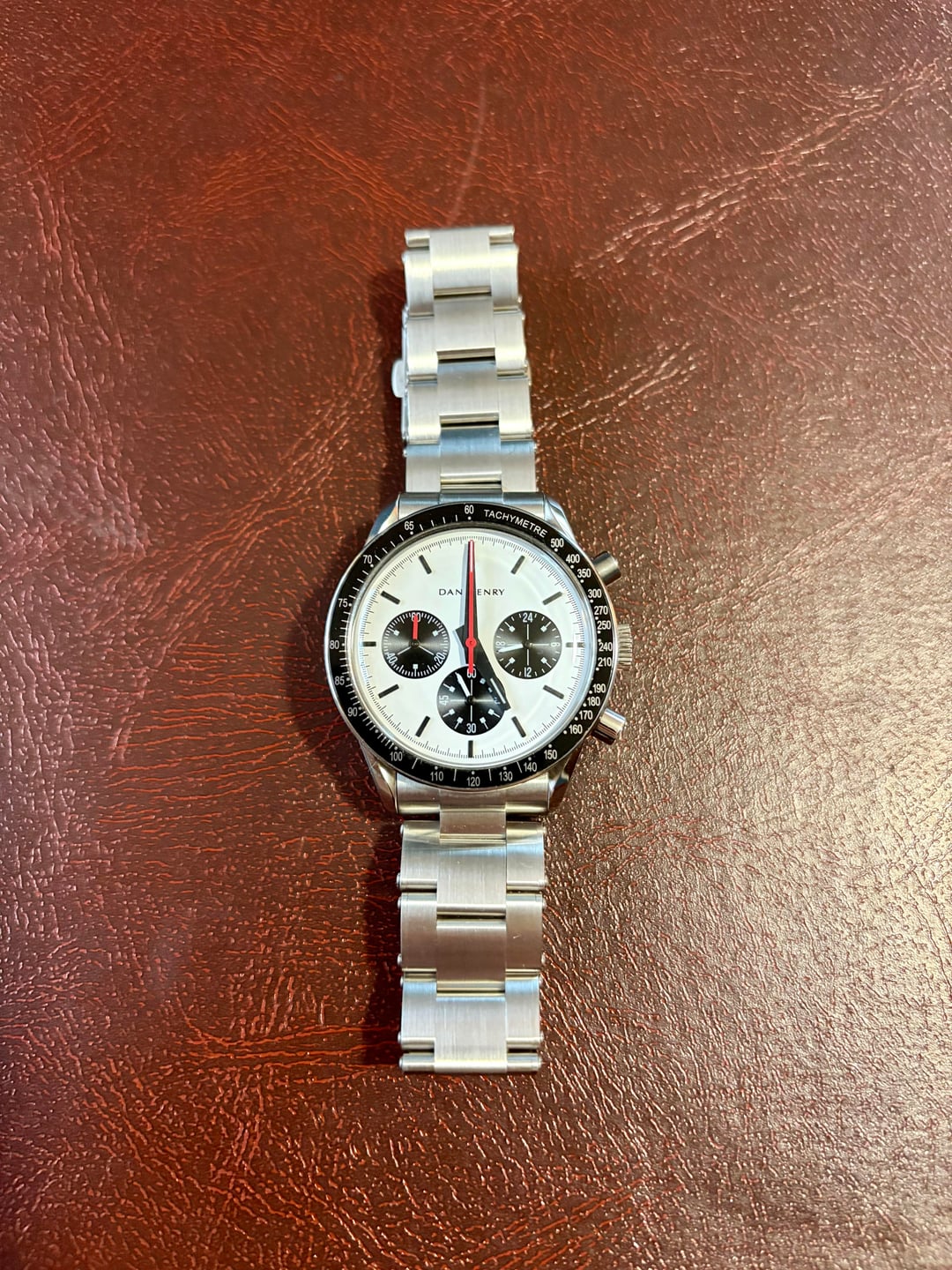 FOR SALE Dan Henry 1962 Panda Comes with original packaging, bracelet installed, tan leather strap, extra links, and watch roll. Watch, bracelet, and strap are in good condition with minor wear. No scratches on the crystal. Please reach out with questions or offers.