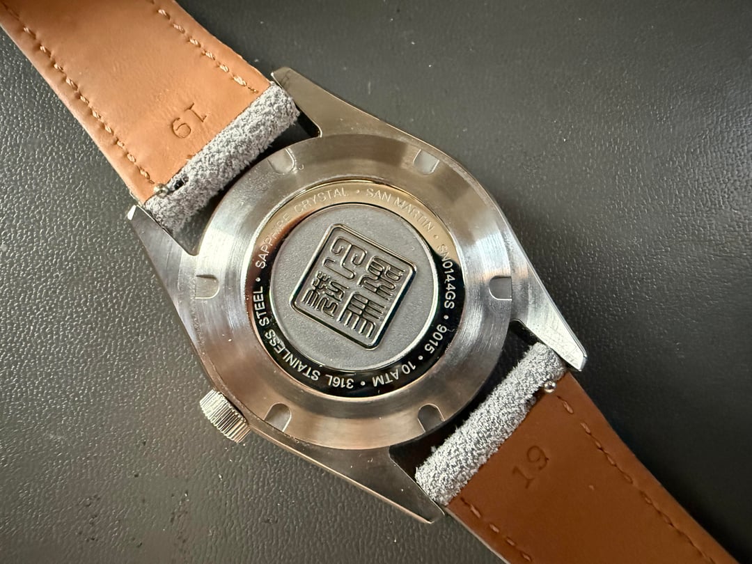 For sale is a 36mm San Martin Jianzhan watch worn sparingly. The crystal, bezel, and case may have fine hairline scratches, but to my eye it looks to be in near-mint condition. Comes with the original box, original purple rubber strap, and an additional gray suede strap. Asking **$185 shipped** to anywhere in the USA. Prefer payment via Paypal F&F (+3% for G&S), Zelle, or Venmo.