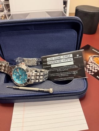 Like new full kit. I have references in multiple groups. Happy to send a video or facetime. Lots of warranty left. * Specifications • Construction Material: 316L Stainless Steel • Surface Hardening: 1200 Vickers surface hardening • Case Diameter: 40mm case diameter, 41mm bezel diameter • Case Thickness: 12.25mm including sapphire crystal • Lug to Lug: 47mm • Lug Width: 20mm • Movement: regulated Swiss ETA 2824 automatic movement • Lume: Swiss BGW9 SuperLuminova across the bezel, hands and indices • Bezel: 120 click uni-directional rotating bezel in ceramic • Crystal: Flat sapphire crystal with 6 layers of internal AR coating • Case Back: oil pressed embossed Hawksbill Turtle image • Bracelet: Solid screw link bracelet, solid end links and quick release spring bars • Clasp: Fully milled push button, on the fly micro adjustment clasp • Hands: Diamond cut with custom made counterweight seconds hand • Dials: Gloss and sunray finish, highest grade dials available • Crown: easy grip, signed, colored inlay, screw down • Water Resistance: 300 meters (30ATM) - twice pressure tested • Warranty: Two year international warranty • Custom made zip up travel case included