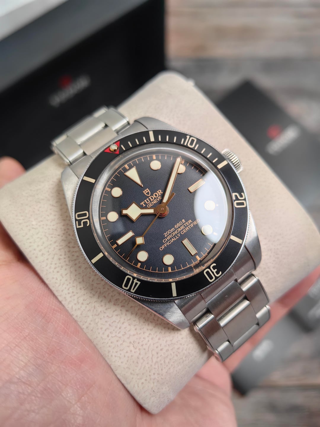 📍 MODEL: Tudor BB58 Gilt 79030n 39mm 📍 PRICE: $2,490 + Shipping OBO 📍 OVERVIEW Up for sale is my great condition BB58 Gilt 79030N. This watch measures 39mm and has an automatic movement. 📍 EXTERIOR Would rate a conservative 8.8/10 condition and great condition. The watch has a steel case on an original Tudor rivet Steel bracelet. Bezel, bezel insert and all other parts are clean however the sapphire crystal has small hairlines between the 12 to 3 pm markers. Has to be tilted at an angle though to be visible. Has minimal usage marks/hairlines on the back of the lugs, caseback (due to contact with the bracelet clasp), as well as high polished case and bracelet sides. No deep dings. 📍 FUNCTIONALITY All functions working well (Crown, bezel, and timekeeping within COSC standards). 📍 INCLUSIONS: Full Kit except extra links: Double Box, Papers, Cards, original receipt, and watch. Watch can fit up to 7-7.25 inch wrists depending on wrist shape. NFC card working and all serial numbers aligned. 📍 SHIPPING: Will use Fedex Priority Shipping, watch will be shipped from the Philippines. Normal shipping time is 3-5 days globally. FOR USA BUYERS: Shipping time MAY take longer due to the recent closure of the De Minimis Exception and local package backlogs. I will gladly work with the buyer on any duties/tariffs involved and I will process all customs documentation. Have extensive experience going through US CBP. 📍 PAYMENT: Paypal ff or g&s (Buyer shoulders international transfer fee of 4.5%), Wise, Direct to bank, or crypto via USDC. 📍 ADDITIONAL PICS Timestamp:https://i.imgur.com/Pkts8sy.jpeg *|| SOLD "as is" with no personal warranty from me and I will not accept returns/refunds unless for an undeclared issue on my end. I will answer all your questions and can send videos of everything for your peace of mind. Fire away with all questions.||*