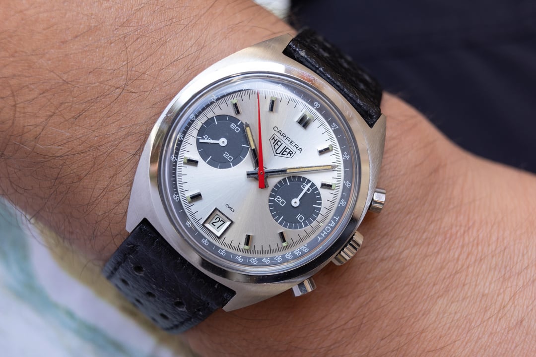 [pics](https://imgur.com/a/R2V0Snk) [timestamp](https://imgur.com/WScJo2g) Case: Unworn condition 38.5mm case with thick and even lugs. 153,XXX serial. Dial: Excellent condition silver tritium dial. Bracelet: Handmade Italian black rallye strap Accessories: Felt pouch. Notes: A rare 70s Carrera in unworn condition. Check out the case back sticker! Offered at $6,250 shipped. Payment by PayPal F&F, bank wire, or crypto. Located in San Diego, CA. Insured overnight FedEx shipping. International shipping available. Buyers shipping the watch to CA will be required to pay applicable sales tax. Thanks for looking and feel free to message me with any questions!! Hit me up on IG u/mvvwatches Email: [[email protected]](mailto:[email protected])