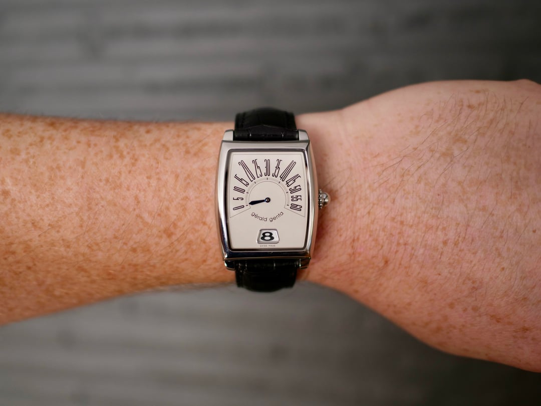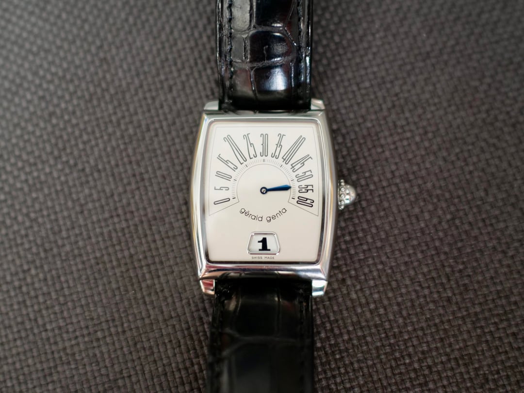 ![Thumbnail [WTS/WTT] Gerald Genta Arena Retro Solo Jump Hour Watch - Box + Paper 7](https://cdn-cf.watchpatrol.net/120x120/img/full/47eea611f5e4e12f73fae7f84459f57d77637371.jpg)