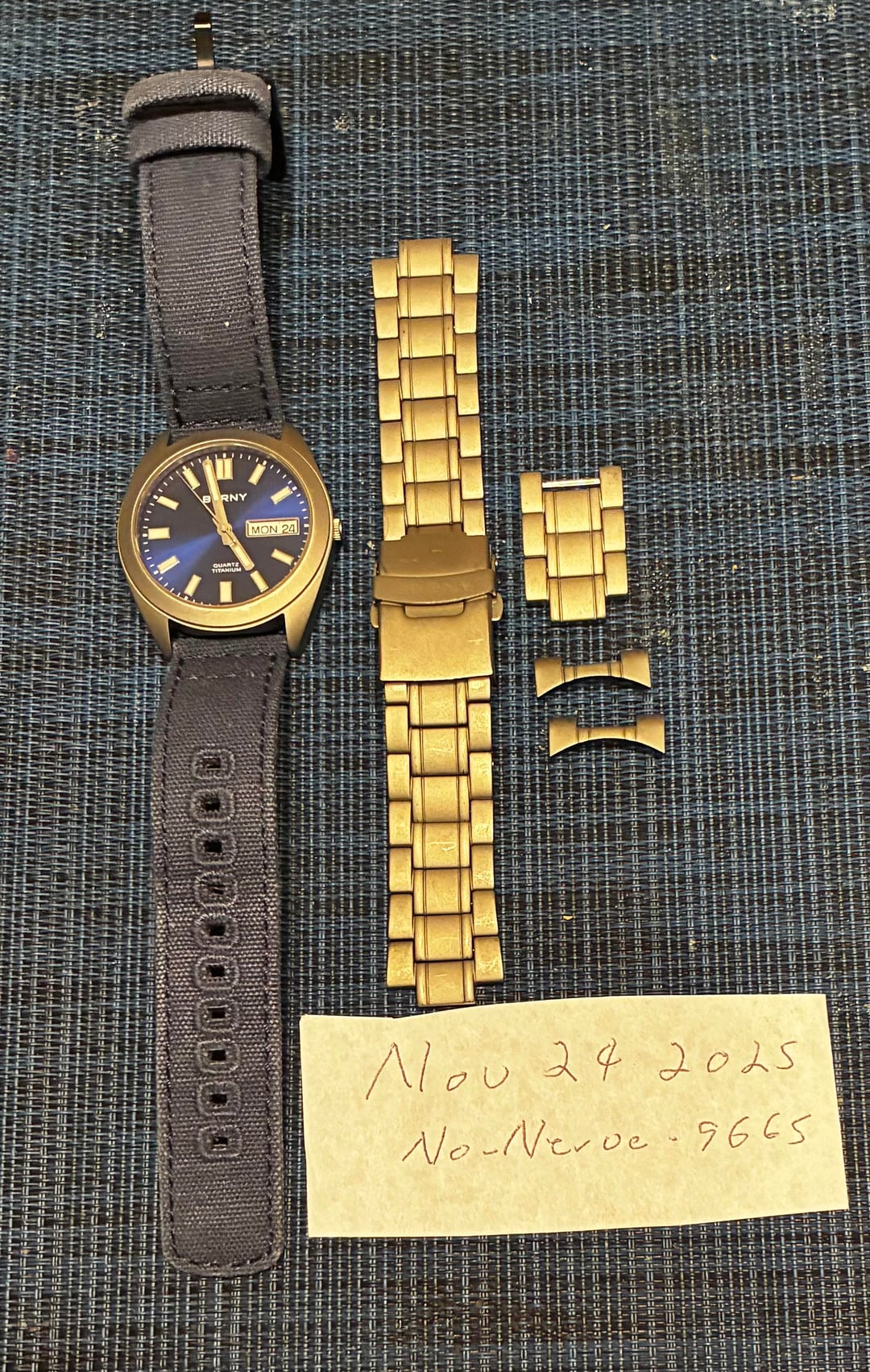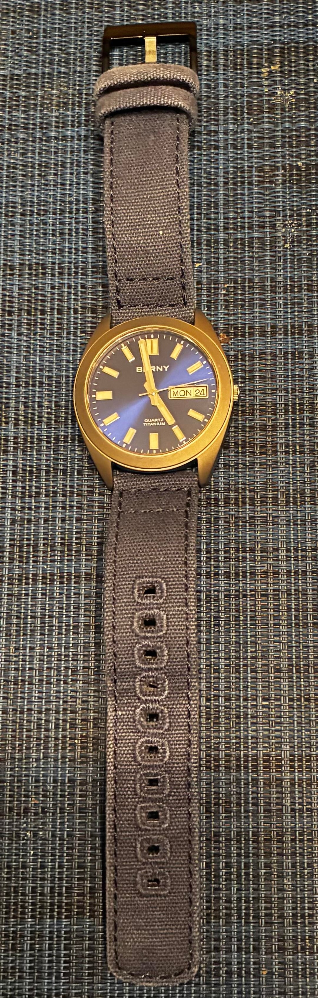 [WTS] Berny Blue Dial Titanium Quartz OEM Titanium Bracelet Sapphire Crystal Barton Canvas Strap