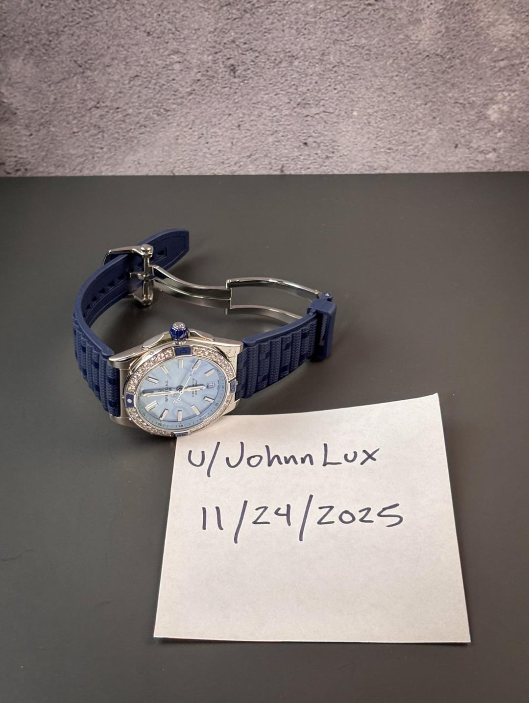Up for sale is a 2024 Breitling Super Chronomat Steel Diamonds A17356531C1S1. The watch is pre-owned and in very good condition. It runs perfectly and was confirmed healthy on the timegrapher. It comes complete with the outer box, inner box, papers, and the manufacturer’s warranty through December 2028. Price is $6,480 and includes insured priority shipping within the continental United States. Trades will be considered. Please include clear photos and your trade value when reaching out. Please excuse any dust in the photos. Macro shots pick up things the eye normally wouldn’t notice. DM with any questions. Thanks for taking a look.