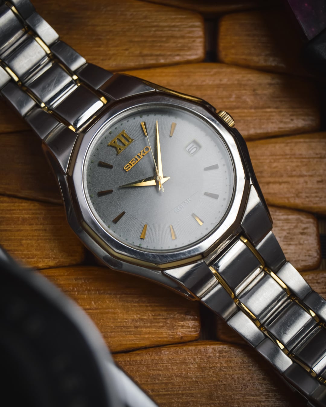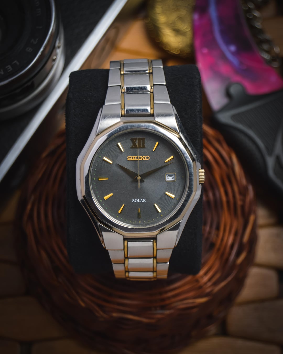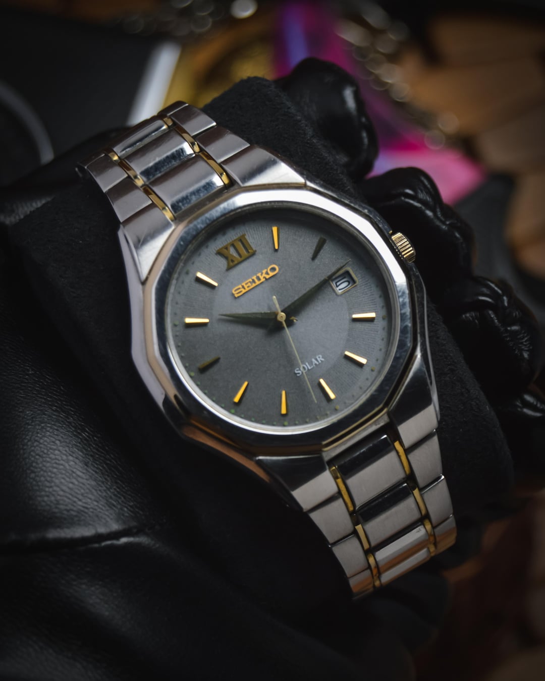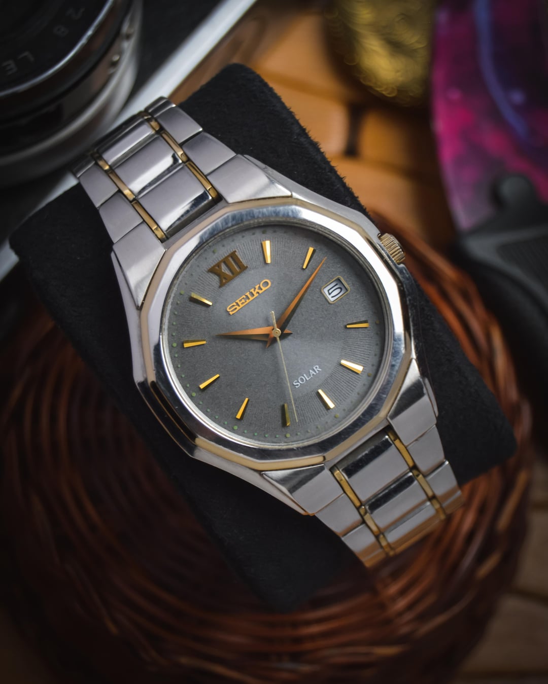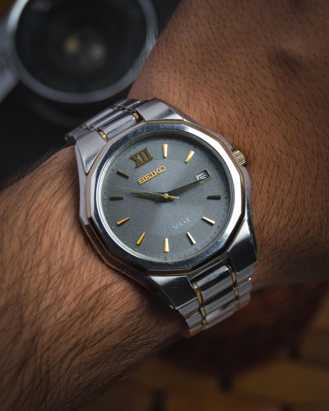 [Timestamp](https://postimg.cc/ygxSmht8) Hey Watchexchange! Seiko has always been a master of crafting everyday watches that strike the perfect balance between style, function, and reliability. This **Seiko Solar SNE166** is a fantastic example. Its two-tone case and bracelet bring a refined touch, while the dial really steals the show. The face features a **rich slate-gray dial** (not a sunburst one — mistakenly written in the title, which I can’t edit). Applied gold-tone baton indices mark the hours, while **dauphine hands** deliver sharp clarity and elegance. At 12 o’clock, a bold Roman numeral **XII** adds classic refinement, complemented by a framed date window at 3 o’clock and a clean minute track around the perimeter. Understated yet elevated, it wears with effortless versatility — casual, business, or dressy. Crafted from **stainless steel with gold-tone accents**, the case and bracelet strike the right balance of shine and subtlety. Topping it off is **Seiko’s Hardlex crystal**, with a solid caseback beneath. Inside ticks the **solar-powered Cal. V157 quartz movement**, freshly fitted with a **new capacitor**, ensuring reliable and eco-friendly performance. 🔹 **Dimensions** • Case Diameter: 42mm • Lug-to-Lug: 48mm • Thickness: 10mm • Band Width: 18mm 💵 **Price:** $145 shipped 🚢 **Shipping:** UPS (Worldwide) 📦 **Payment:** PayPal F&F, PayPal G&S (+4.5% fee paid by buyer), or **bank wire (US banks accepted)** 📩 DM me for more pics or a custom timestamp. If you’re after a sleek, eco-friendly daily wearer with a classic two-tone finish, the **SNE166** is a perfect choice. Follow my **Instagram** through the link in my **Reddit** **profile** to see more of my collection and upcoming listings.