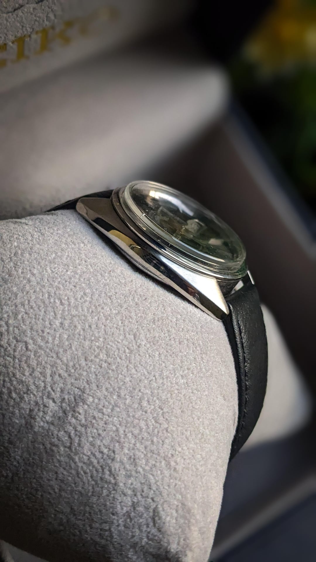 Description This is a vintage Seiko 5 Actus Automatic 21 Jewels men’s wristwatch, model 7019-7080, featuring a highly sought-after graphite black dial. Produced around 1980, this Japan-made timepiece captures Seiko’s timeless craftsmanship and elegant simplicity. It runs on the reliable Seiko Caliber 7019A automatic movement , working fine not serviced, equipped with 21 jewels and a quickset bilingual day-date function at 3 o’clock. The dial showcases a stunning opaline black finish with silver-tone hands and hour markers, giving it a refined vintage character. The stainless steel case retains its original tonneau shape. The acrylic crystal shows only minimal wear consistent with age. Measuring approximately 36mm in width (excluding crown) and 40mm in height (including lugs), it offers a comfortable fit and a classic 1980s Seiko presence on the wrist. This watch is fully functional and running well, ideal for collectors or enthusiasts seeking a genuine Japanese vintage piece with a rare black dial variant. Timestamp: https://imgur.com/a/k70x0Wc Price : $275