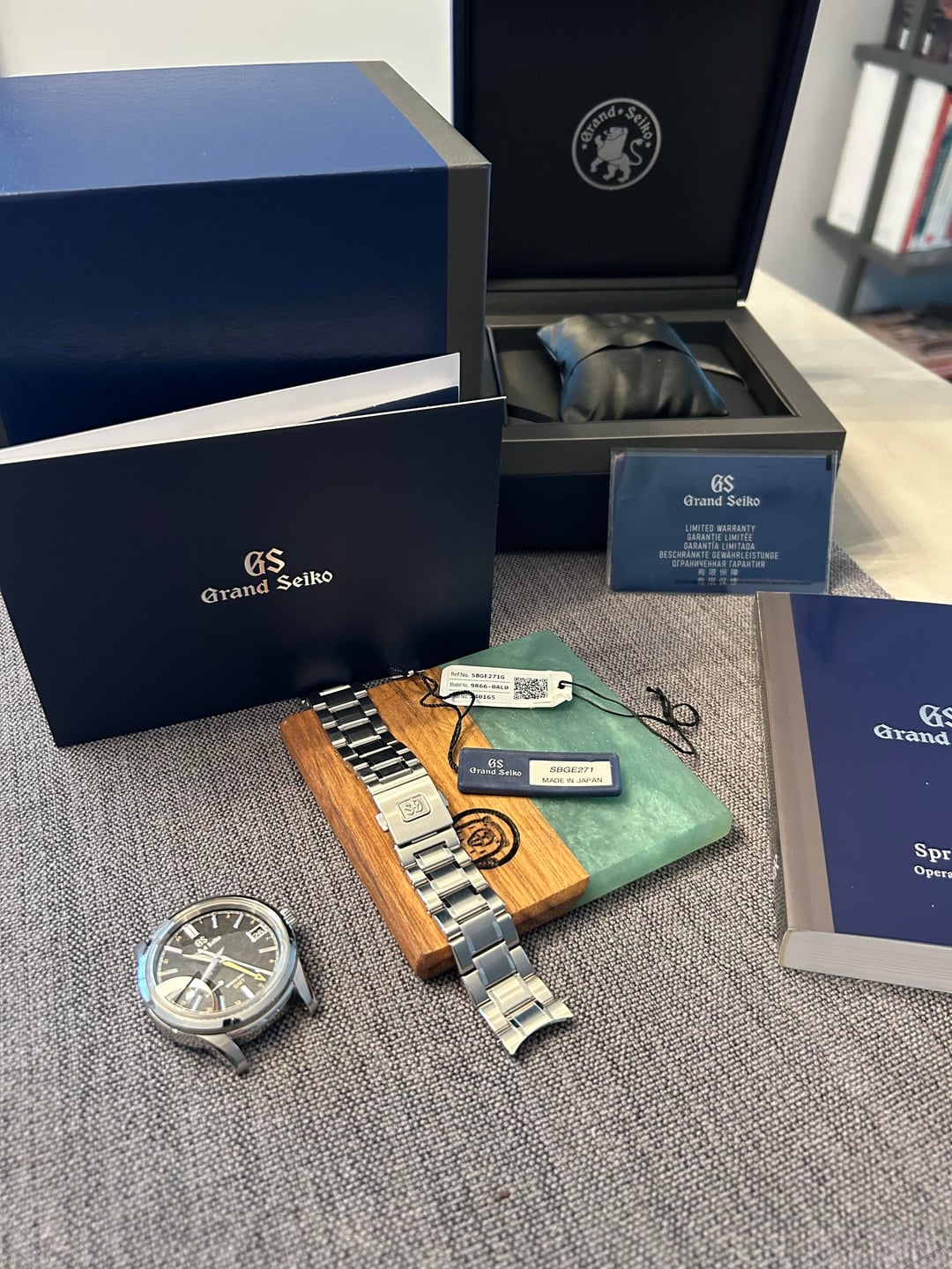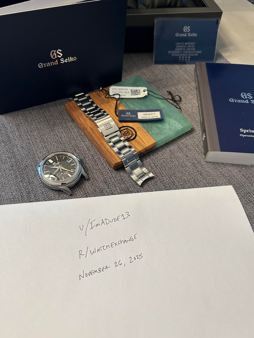For sale is a Grand Seiko SBGE271 GMT from the Elegance Collection This watch is in excellent condition and comes as a full set with box and papers. Watch was purchased brand new from Burdeen's Jewelers in Chicago on March 30th 2024, and is still under warranty until March 30th 2029. The watch is in excellent condition. The SBGE271 has incredible finishing - it's incredibly difficult to capture the texture on the dial. [The Grand Seiko website](https://grandseikoboutique.us/products/watch-spring-drive-autumn-sbge271?srsltid=AfmBOoqf28vY1omTBdVlb8yS4__B28BUQXlXoU51yOchmUiuvAnjwBT5) will do a much better job of this that I was able to in pictures. Inside is the highly accurate Spring Drive Caliber 9R66 Spring Drive GMT, with 72-hour power reserve. The movement is visible through the exhibition case back. It comes with bracelet in excellent condition and all links included. Asking $5,200 or best offer, insured shipping CONUS included. Payment preferred by Bank Wire Transfer. Please let me know if you have any questions!