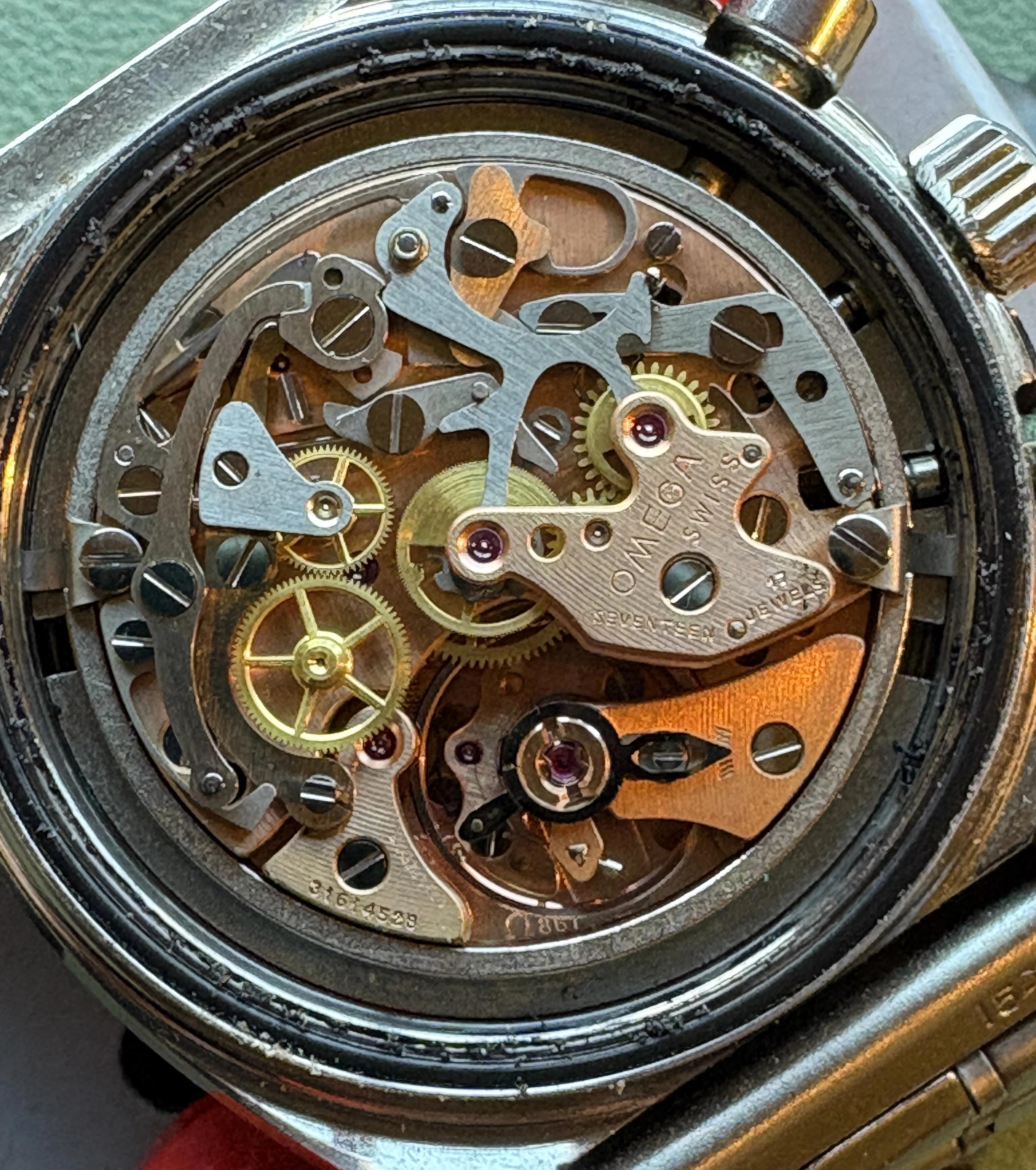 The watch has not been serviced in my possession, but is winding, setting, and running properly, including chronograph functions. As shown in the timegrapher photos, it is keeping good time but the amplitude is low, so a service is recommended for regular use.