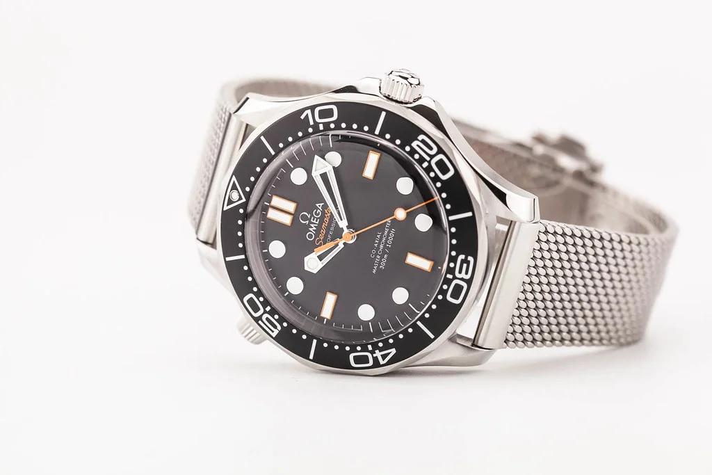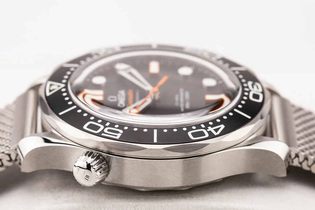 Up for sale is a brand new Omega Seamaster 300 42mm Black Aluminum Dial & Bezel with Orange Accents on Mesh Bracelet, reference # 210.30.42.20.01.018. It comes complete with all boxes, papers, booklet, hang tag and Omega Warranty Card dated November 2025.
