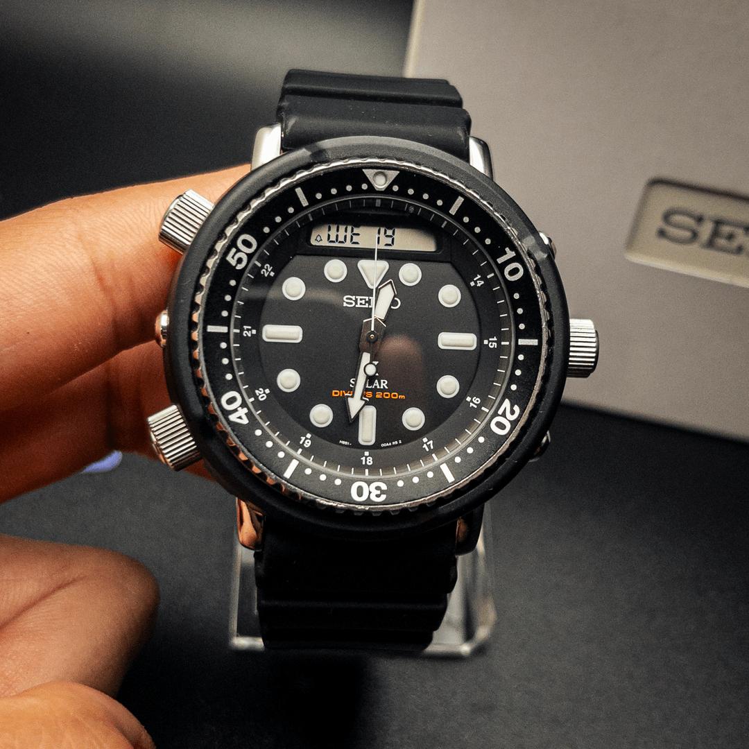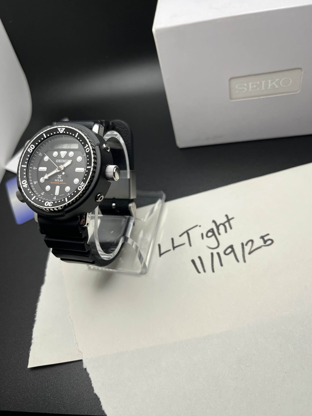 Imgur: [https://imgur.com/a/x9nbFDe](https://imgur.com/a/x9nbFDe) Up for sale is a Seiko SNJ025 “Arnie,” the modern reissue of the iconic H558 worn by Arnold. Condition is excellent — clean crystal, clean bezel, minimal wear on strap, full set included. Caseback sticker still intact. Everything functions perfectly: solar charging, backlight, chrono, alarm, dive bezel. **What’s included:** • Watch • Original strap • Box • Warranty card **Price:** $370 shipped CONUS (Paypal, Venmo, n CashApp) No trades please. Thanks 4 looking and feel free to DM me with any questions!