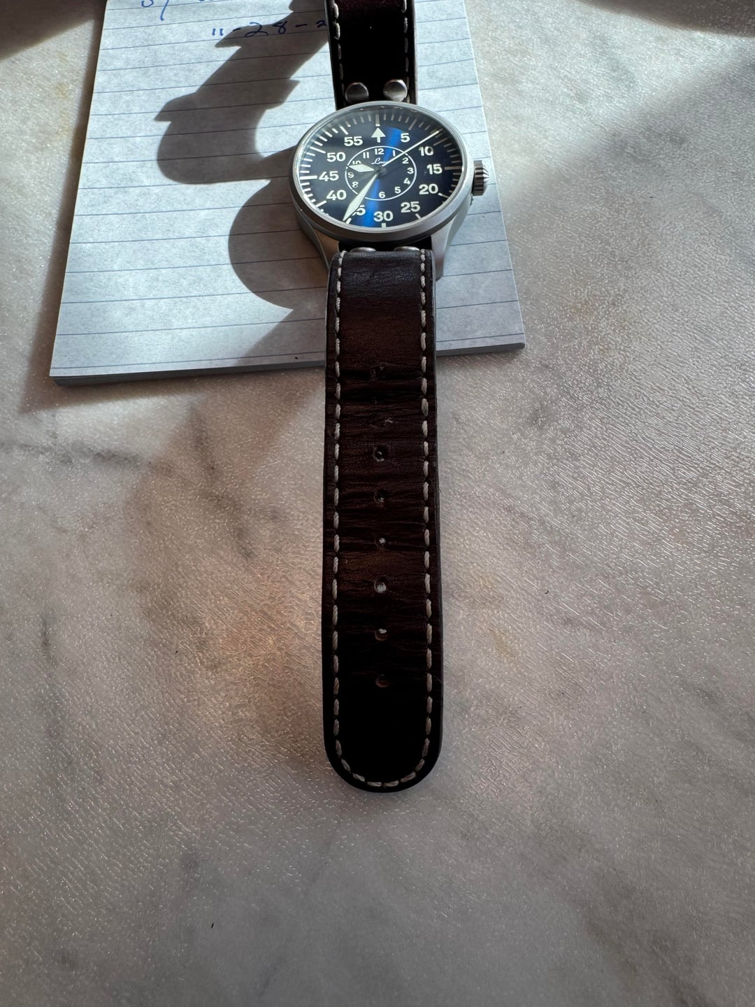 Hi everyone - I am selling my Laco Aachen 42mm in the discontinued Blue Staude / Blaue Stunde dial. The blue really pops in sunlight, and the watch is in excellent condition. Price: $299 shipped CONUS Since this is my first sale on r/WatchExchange, I’m covering PayPal Goods & Services for buyer peace of mind. What’s Included • Full inner and outer box and papers • Original Laco pilot strap • Watch in excellent condition Condition • Case: excellent, no visible marks • Crystal: clean • Strap: mild aging from storage, little wear • Movement runs smoothly • Gorgeous blue dial with great sunlight play Specs • 42mm case • Automatic Laco 21 (Miyota-based) • Sapphire crystal • 5 ATM • Made in Germany • Type B flieger layout Shipping / Payment • USPS Priority (covered by me) • PayPal G&S included (first sale) • CONUS only Happy to answer questions or send additional pics. Thanks!