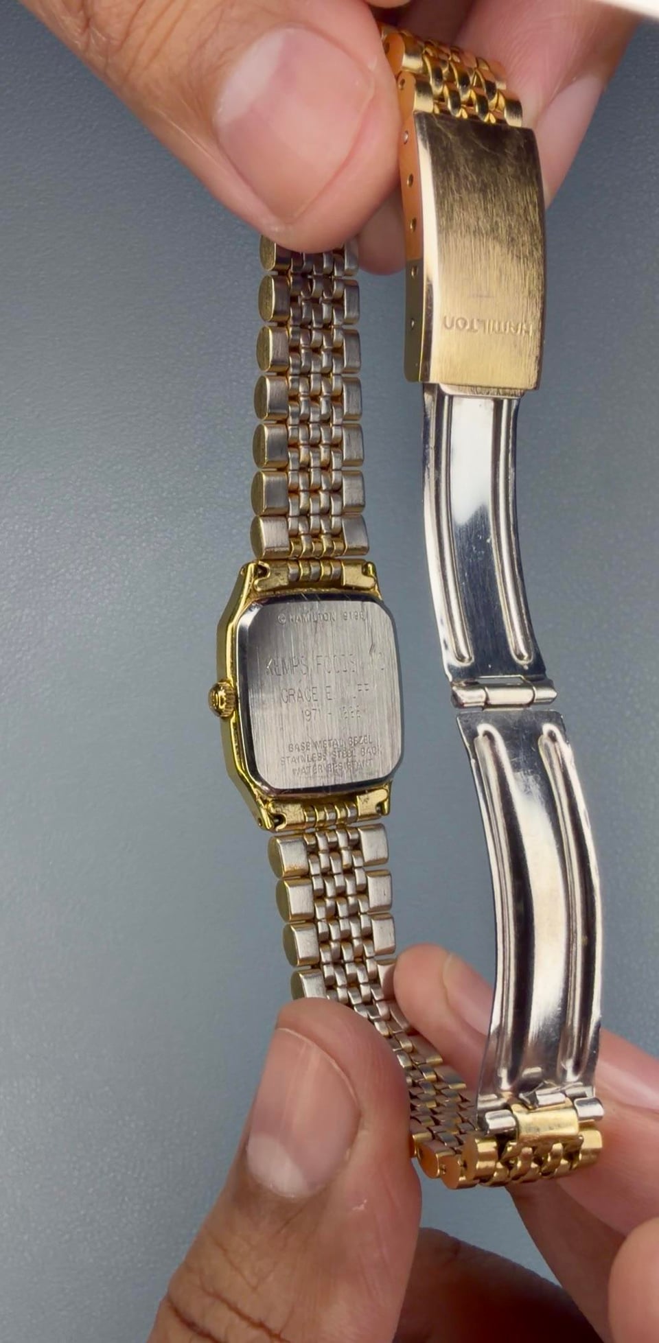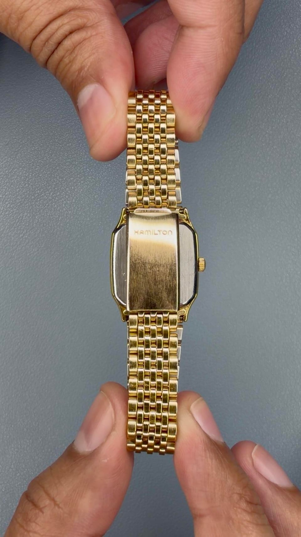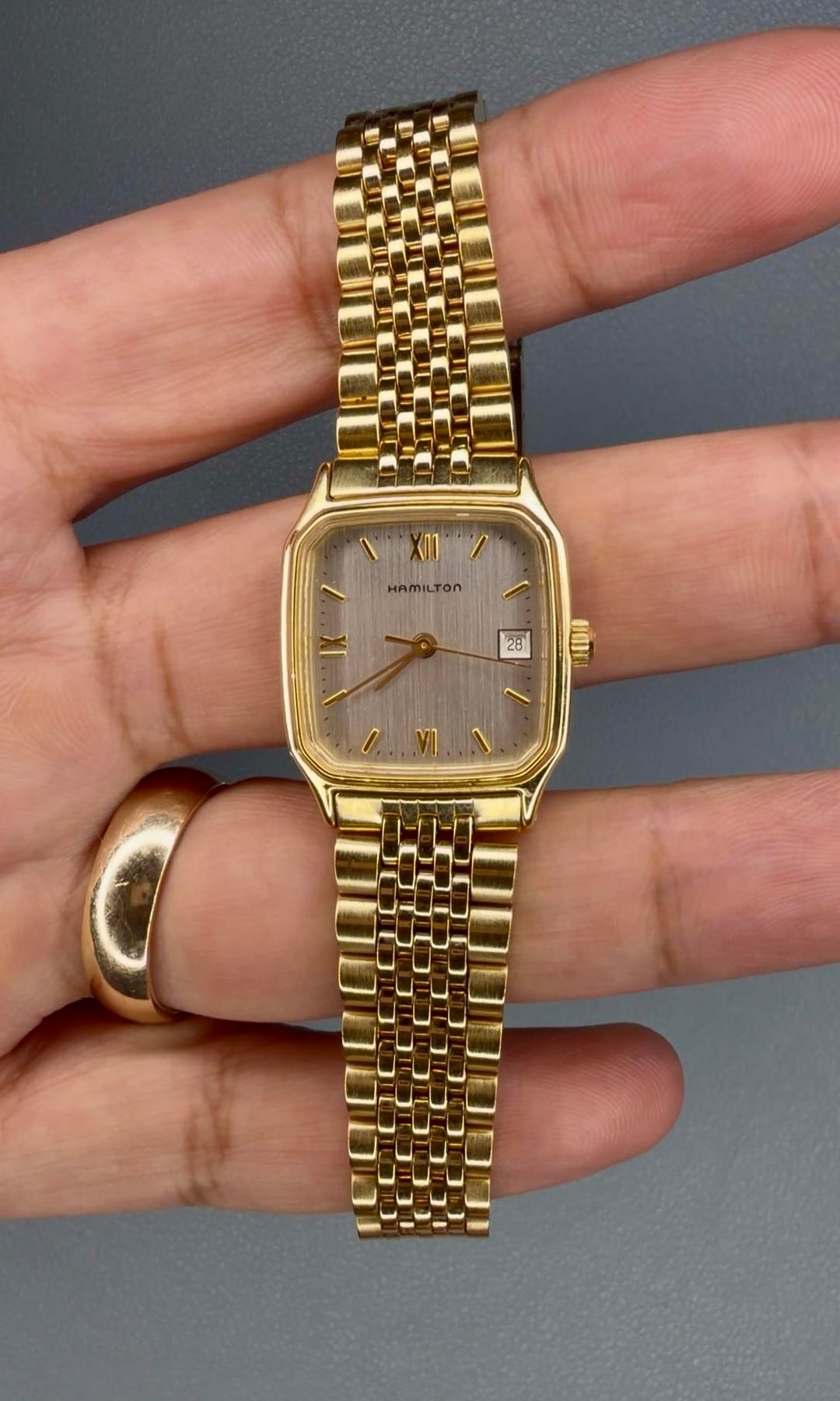 Ladies Hamilton 9196 -Details: A beautiful ladies watch in gold, with a jubilee style bracelet. In near pristine condition! Engraving on caseback. Makes a great gift or for any lady looking for a high quality piece to add to their collection! -$150 shipped -Includes shipping (US). I accept Venmo, Zelle, CashApp, and PayPal (+4% if using G&S) -Case size: 22x27mm -Movement: Quartz -Timestamp: https://imgur.com/a/AH9f0Fj -Location: Downtown Los Angeles -IG: @ColeccionDeLosSantos -TikTok: Chris.DeLosSantos