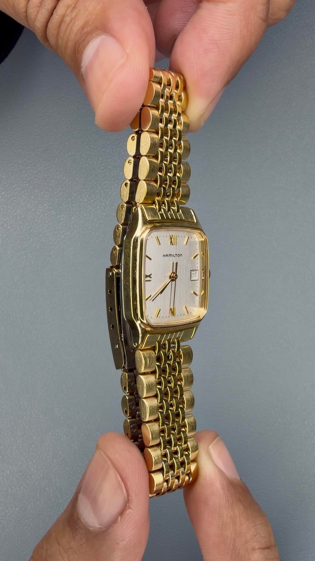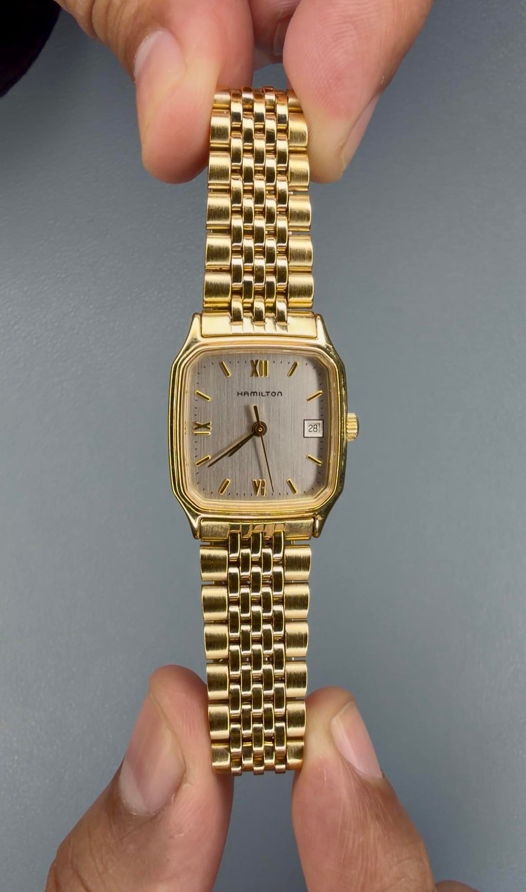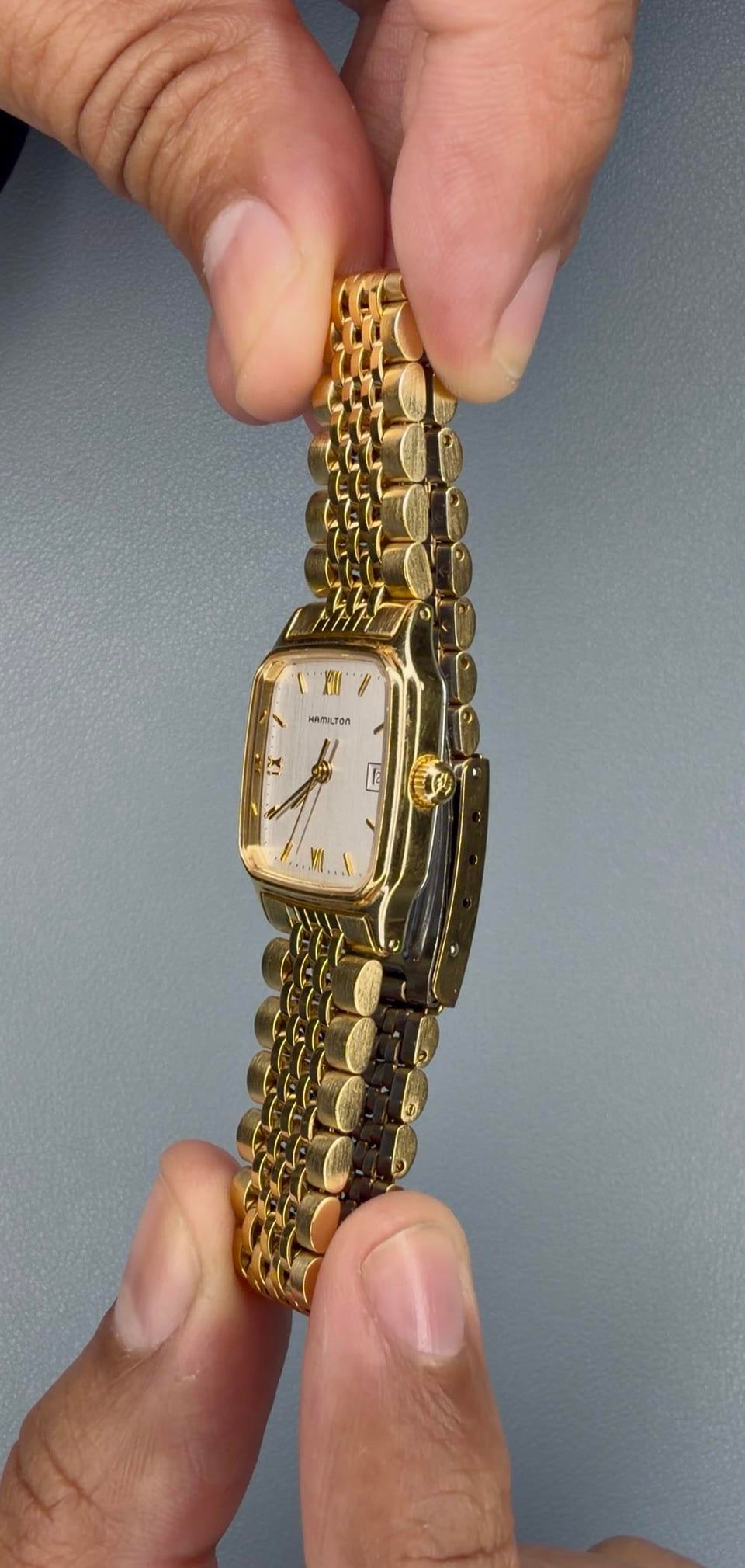 Ladies Hamilton 9196 -Details: A beautiful ladies watch in gold, with a jubilee style bracelet. In near pristine condition! Engraving on caseback. Makes a great gift or for any lady looking for a high quality piece to add to their collection! -$150 shipped -Includes shipping (US). I accept Venmo, Zelle, CashApp, and PayPal (+4% if using G&S) -Case size: 22x27mm -Movement: Quartz -Timestamp: https://imgur.com/a/AH9f0Fj -Location: Downtown Los Angeles -IG: @ColeccionDeLosSantos -TikTok: Chris.DeLosSantos
