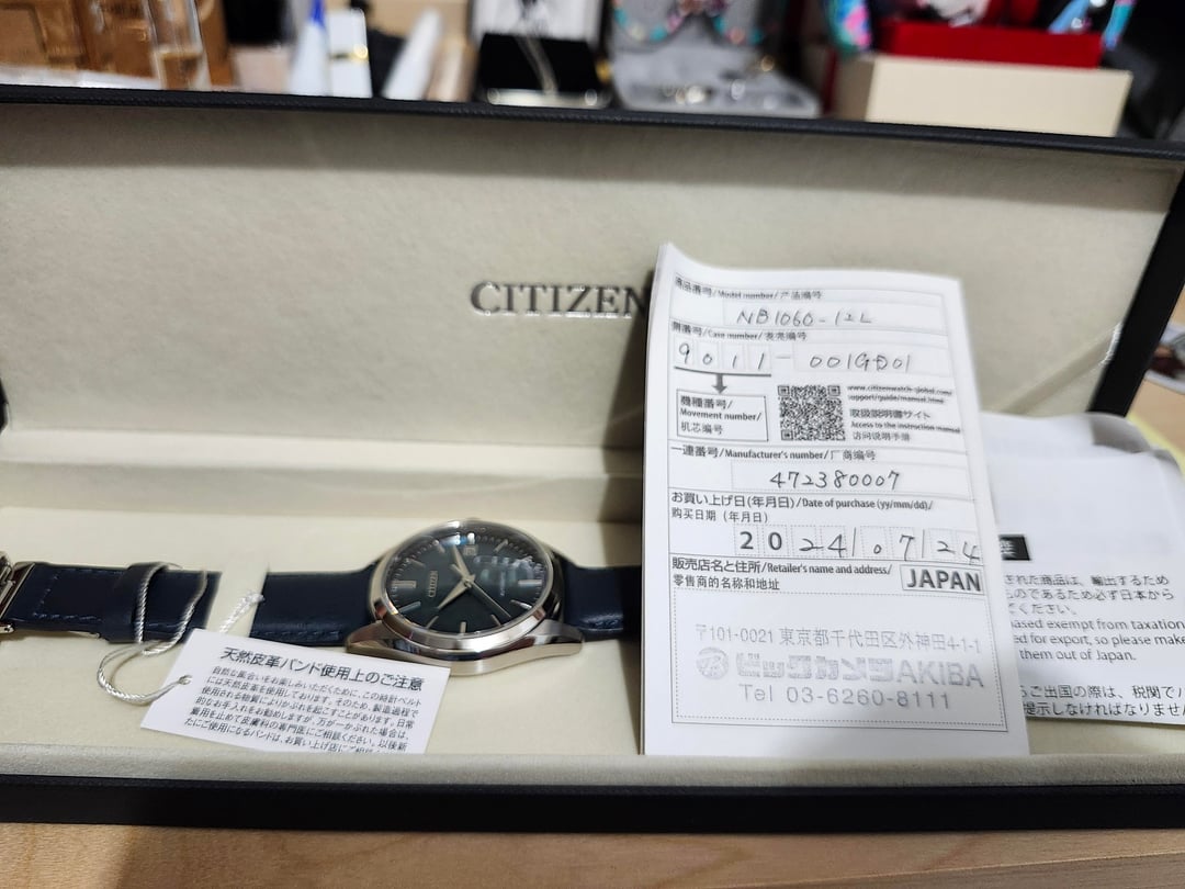 Hi all, Selling my JDM Citizen NB1060-12L. It is new in box, only tried on a few times and then stored. This watch was bought on 2024 in Japan but I didn't use it. Price: $650 USD, shipped and insured within CONUS Payment: PayPal Friends & Family (or add 3% for Goods & Services) Condition is essentially new. Many pictures provided so you can judge for yourself. Let me know if you’d like additional photos or have any questions!