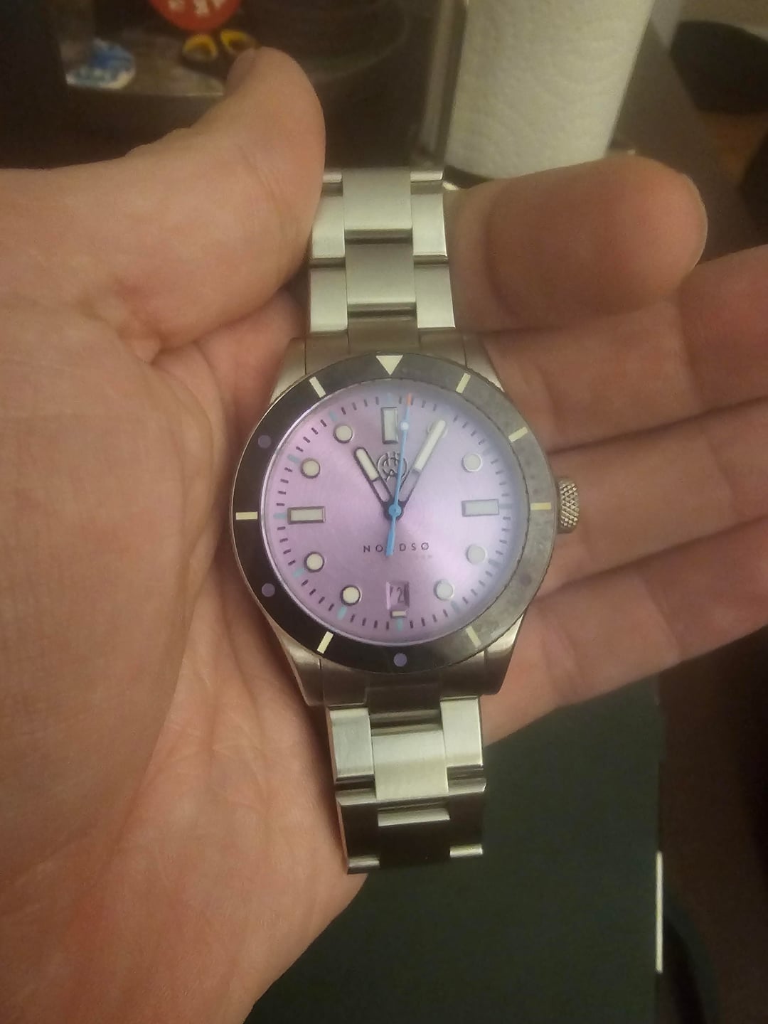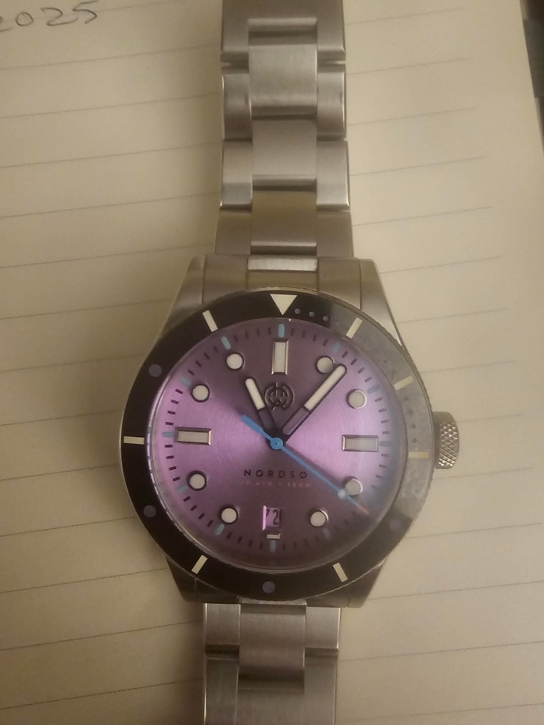 Selling this Henry Archer Nordso in Iris that I purchased in the last couple of months from someone on Reddit. I like it a lot, but ended up getting the same model in a different color I like better. It has some wear on the links due to resizing/removal of links. No scratches on the dial. Comes with box, leather case, certificate of authenticity, manual, and extra links. Happy to send more pictures if you'd like. Asking $400 shipped CONUS!