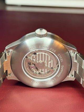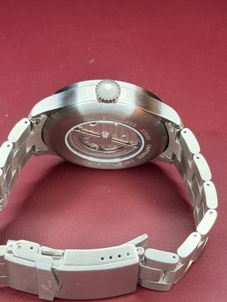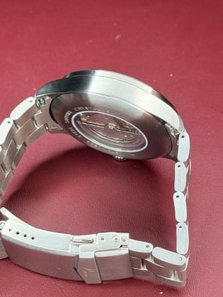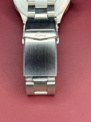 Excellent condition. I don't see any marks. Blued hands that are difficult to photograph. 2S movement. Some damage to the outer box where some of the coloring came off with tape. Inner box is perfect. automatic movement Laco 2S basic movement Miyota 82S0 Second hand stop Case: stainless steel case, sapphire crystal Dial: grey, numbers and figures with Superluminova BGW9 Hands: thermical blued hands, filled with luminous material Superluminova BGW9 Box: grey gift watch box diameter: 42,0 mm height: 11,7 mm lug width: 20,0 mm lug to lug: 50,0 mm waterproof: up to 5 ATM weight: 91 g (incl. strap) Arm circumference: 17,5 - 22 cm