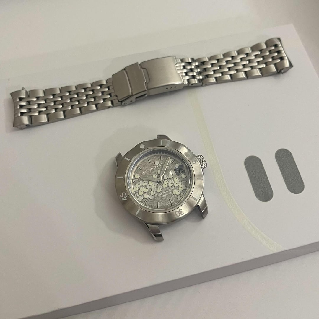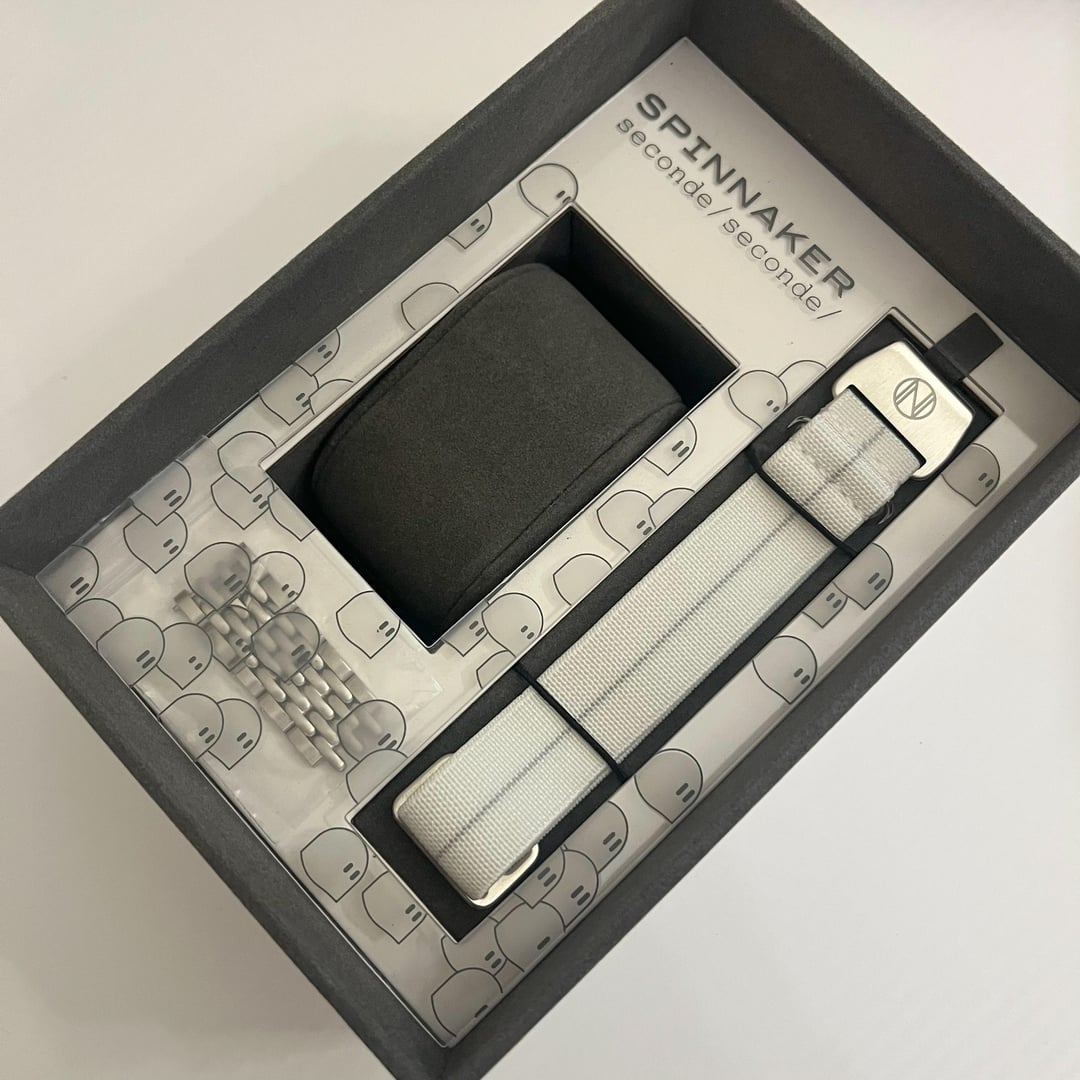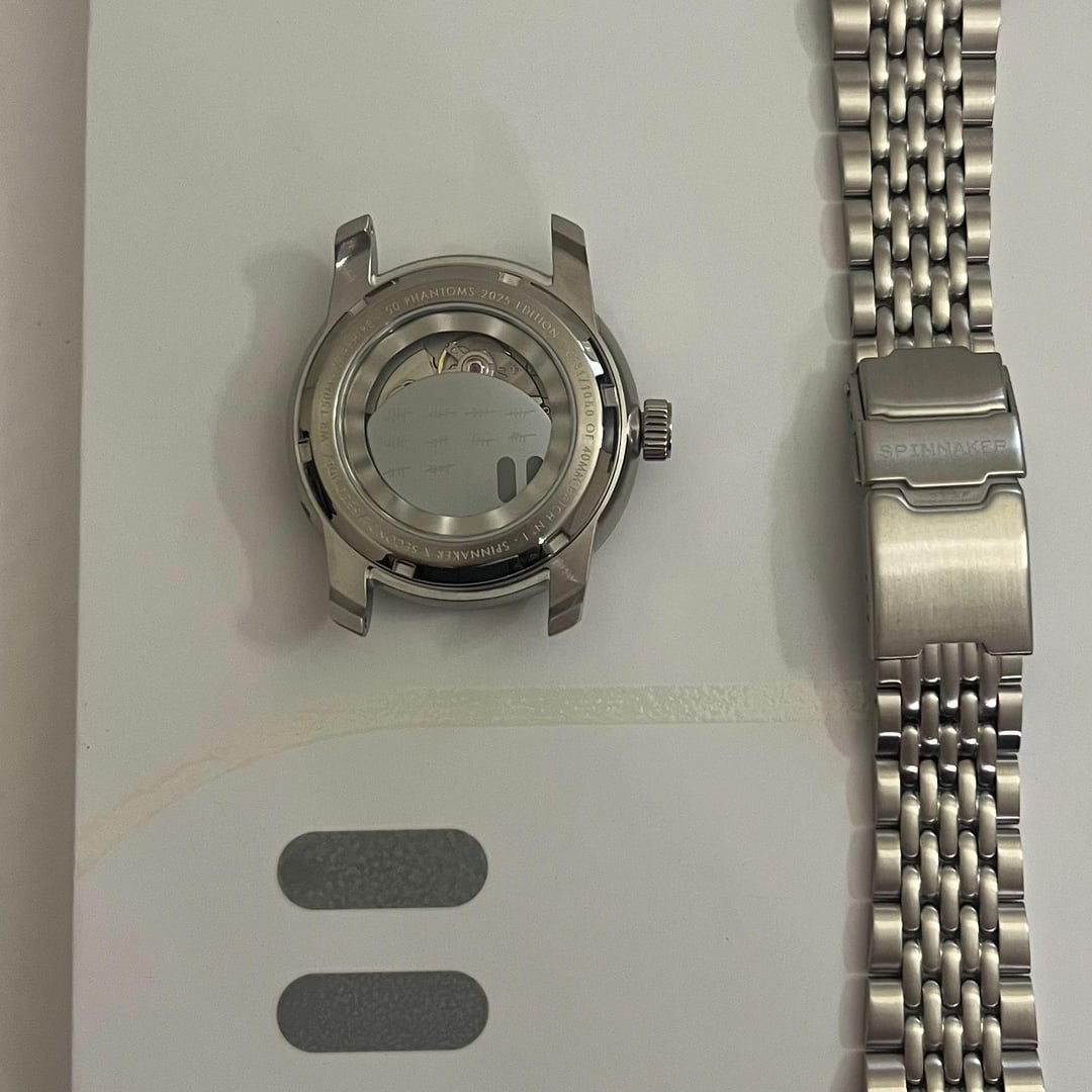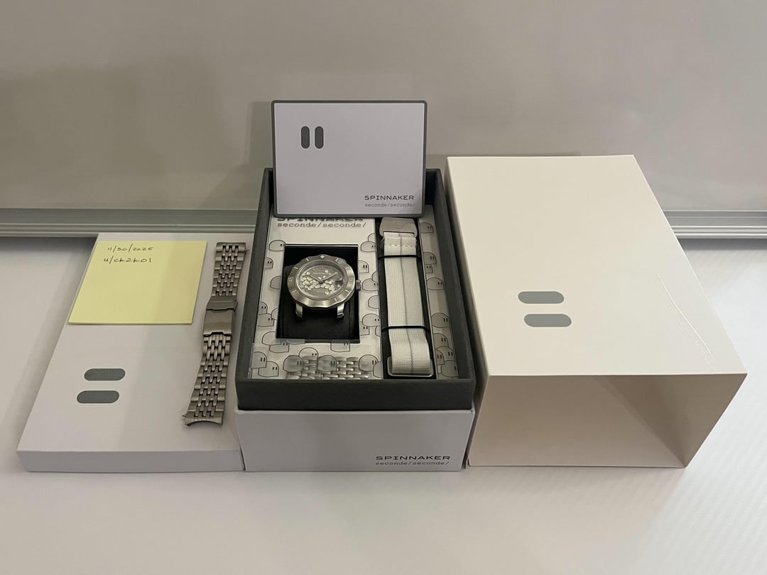 For sale is a Spinnaker Fleuss 40 Automatic Seconde Seconde 2025 Edition in great aesthetic and functional condition, and with all original packaging. I only wore the watch a small number of times. I had resized the bracelet to fit my 6.5" wrist but never wore it on the bracelet, and I reattached all the spare links after I took the pictures so that the watch could be restrapped around the pillow. **$525 shipped CONUS.** Payment via Venmo or Zelle. PM if interested.