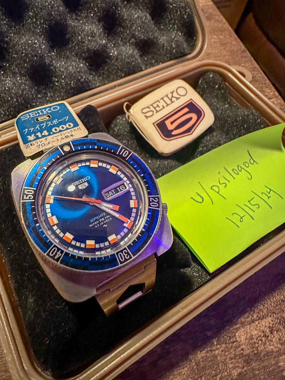 Hello WatchExchange,I am selling my beloved NOS 1969 Seiko 5126-8120 “Rally Diver” that was sourced by The Tokei Club in Tokyo, Japan. This is in fantastic condition for its age with the original price tag as well as manual included. The original box is not included but will come with The Tokei Club hard shell travel box. I am asking for $1,550 for insured shipping to the US48 only please (no international shipping at this time).I don’t have many transactions on watch exchange but have seller history on eBay under user psilogod. Updated timestamp on video. Payments can be made via Venmo or PayPal FF.