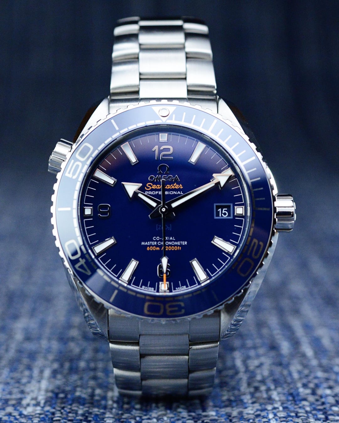 The Omg Seamaster Planet Ocean 600M Master Chronometer Ref. 215.30.44.21.03.001 features a 43.5 mm stainless steel case (49 mm lug-to-lug, 16.09 mm thickness) paired with a stainless steel bracelet and a foldover clasp with comfort setting and diver extension. It showcases a blue ceramic dial with luminous arrow-shaped hands, index markers, and Arabic numerals at 6-9-12, framed by a uni-directional stainless steel coin-edge bezel with a blue ceramic Liquidmetal™ inlay. The domed, scratch-resistant sapphire crystal has anti-reflective treatment on both sides, while the transparent screw-in caseback reveals the METAS-certified Omega Calibre 8900 automatic movement with a 60-hour power reserve. With 21 mm between the lugs and a total weight of approximately 216 g, this gents-sized Planet Ocean offers 600 m / 2000 ft water resistance, a helium-escape valve, and essential functions including hour, minute, second, and date. [Timestamp](https://postimg.cc/JD9Nh2Xb) **Asking Price:** **💲4,750.00 USD**. I accept Zelle and Wire and Escrow available for added safety on both sides. DM for more info! **MSRP Price:** **💲8,000.00** **Key Features:** · **Case Diameter** – 43.5 millimeter · **Case Material** – Stainless Steel · **Power Reserve** – 60 hrs. · **Set Contents** – Inner / Outter Box, Papers, Omega pouch · **Bracelet** – Stainless Steel Bracelet · **Location** – Sugar Land, TX **Condition:** The watch is in excellent condition. Ready to wear or Christmas gift. Additional photos and video on request. **Trades Welcomed!** I'm open to trades if you have watches that pique my interest. **The GMT Vault Difference** Each timepiece is sourced carefully and represented honestly. I’m happy to walk through the watch live on video if requested. I prioritize clear communication and a smooth buying experience. For clients outside Houston, shipping is handled through insured FedEx Overnight, with the packaging process documented for peace of mind. **All photos shown are of the exact watch being offered.** I photographed it myself so you can see its condition and details clearly. If you'd like to view it live, I’m happy to set up a quick video call. Find me on IG - u/theGMTVault