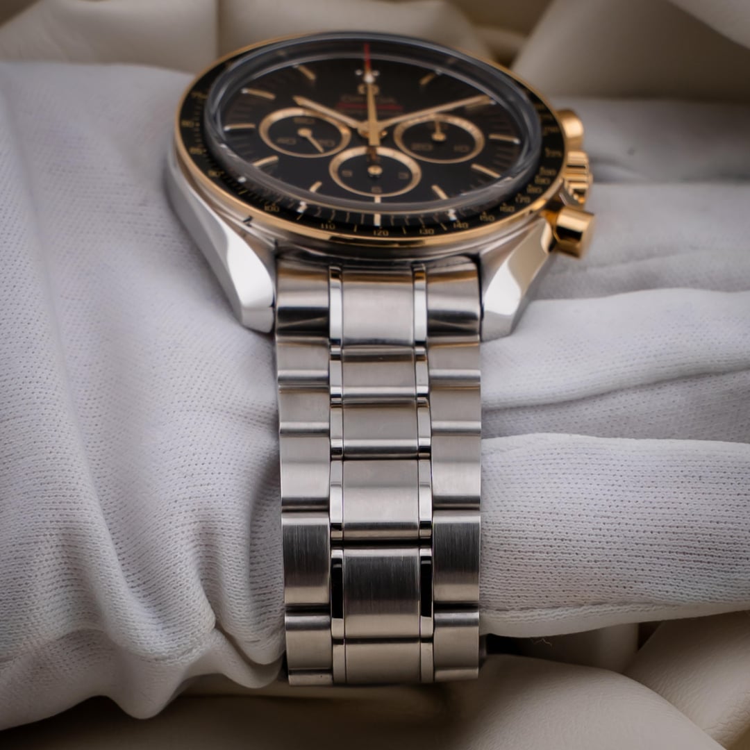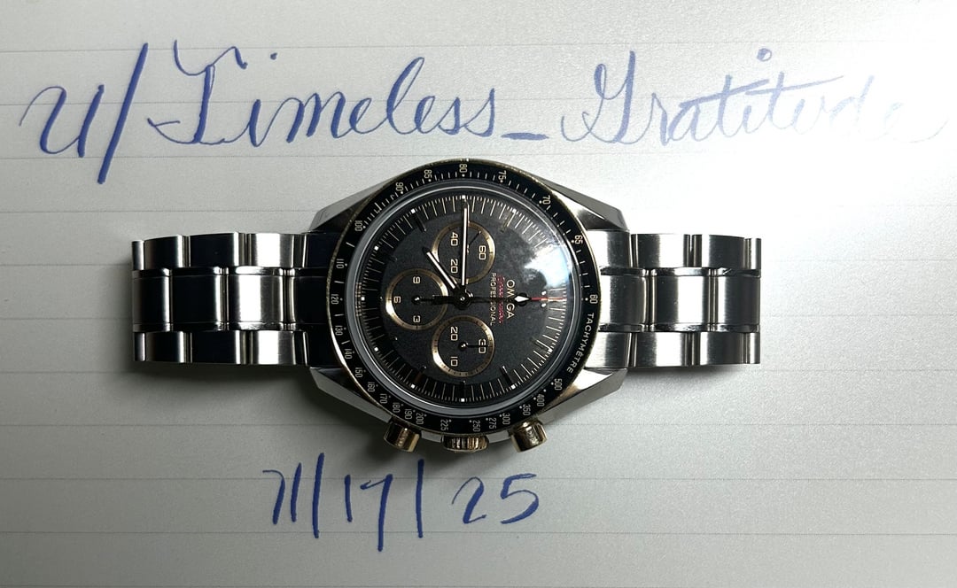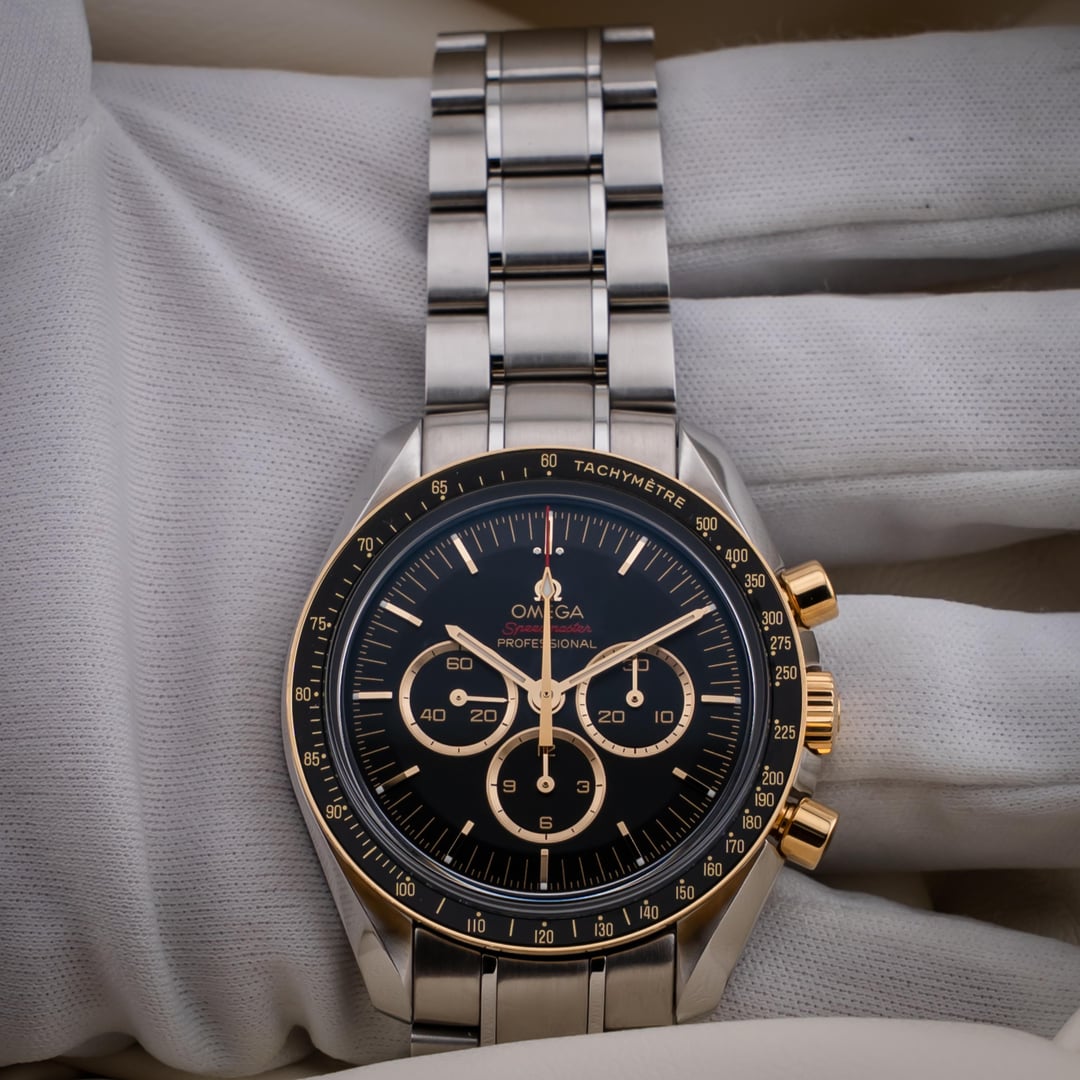FS: Omega Speedmaster Professional “Tokyo 2020 Yellow,” ref. 522.20.42.30.01.001. Featuring a 42mm stainless steel case with yellow gold accents, black dial with gold subdials, and the classic hand-wound Caliber 1861 movement. Condition: \- Very good pre-owned \- Case and crystal excellent \- Bracelet and strap show only light wear \- Running strong What’s included (Complete Set): \- Inner & outer boxes \- Warranty & pictogram cards \- Instruction manual \- Hang tag \- OEM stainless steel bracelet (full links) \- OEM rubber strap Price: $6,500 + label Shipping & Payment: \- FedEx Priority Overnight, fully insured \- Wire or Zelle only \- Ships within 1–2 business days after cleared funds Additional: \- Collector/dealer with references available \- FaceTime/video presentation on request \- Location – Phoenix , AZ