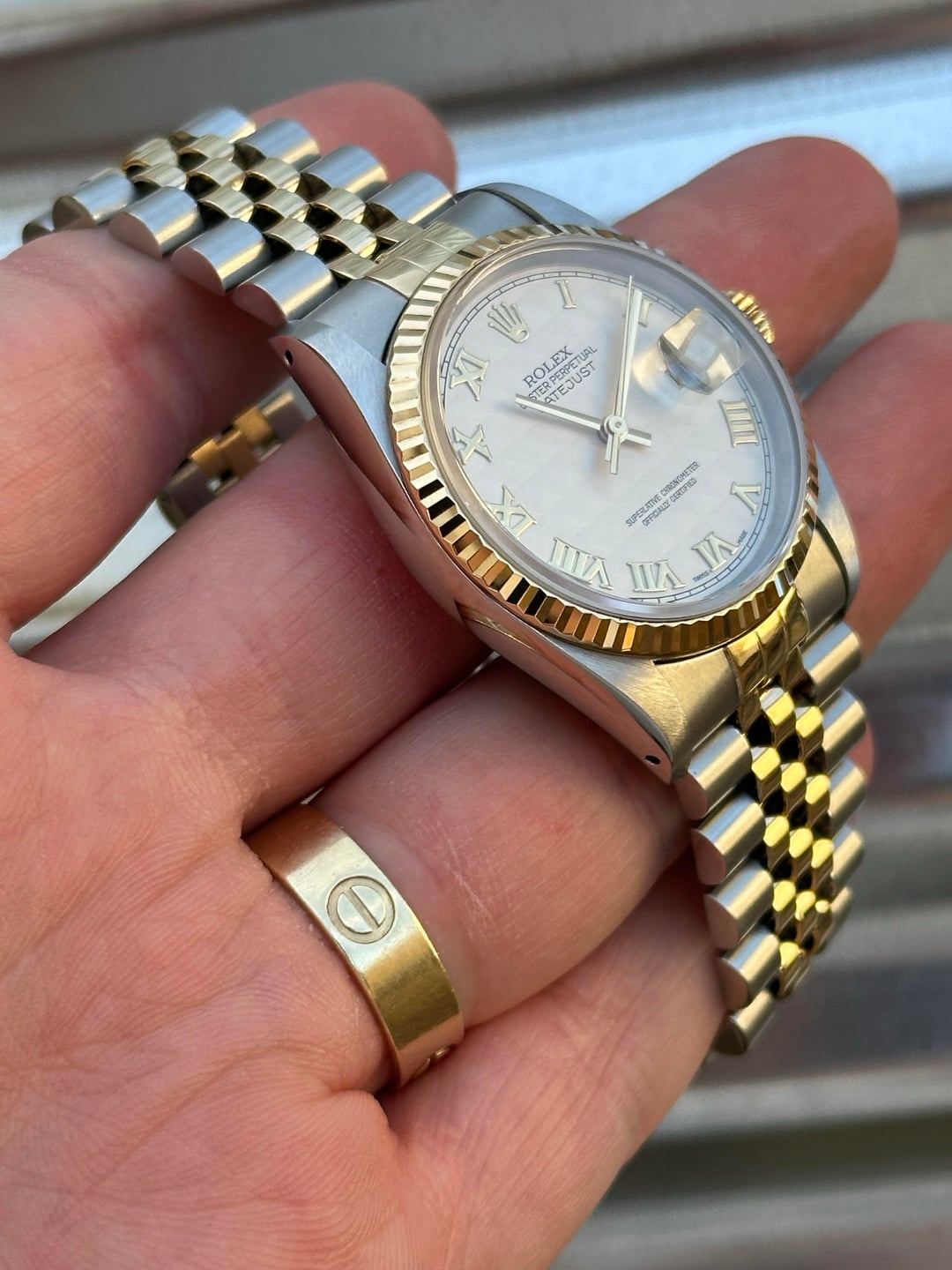 ![[WTS] Rolex Datejust “Ivory Pyramid Dial” 36mm Ref.16233 / Box & Papers 10](https://cdn-cf.watchpatrol.net/600x600/img/full/9393ee25b9a1181854282269cb337ab3226ff045.jpg)