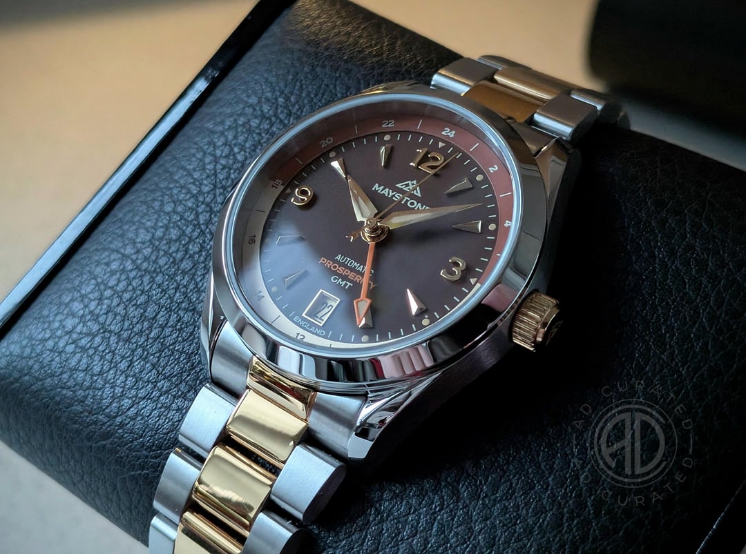 Good afternoon, WatchEx! Just a quick relisting tonight with a reduced price: the Maystone Prosperity GMT Golden Eagle, limited to just 100 total pieces. If you're just now finding out about Maystone, join the club - an upstart micro brand from the former brand manager for Geckota (the watch brand of British watch/strap/accessory retailer Watch Gecko, one of my favorite places to shop) has been dreaming up his own watch brand for years, finally culminating in the Prosperity line. It ticks a lot of boxes - properly sized for a daily wearer, classed-up but still sporty, and still extremely practical. The watches were released in very small batches, and they're current producing the rest of these limited runs after a successful Kickstarter campaign got them off the ground. It's a very well-built and finished watch that gives me a lot of hope for the brand moving forward. The two-tone Golden Eagle is the pick of the litter, in my opinion - though the rest all honestly look great. If you dont want to wait for the remaining watches to release (and don't want to pay retail), this is your shot to grab a very gently handled example for a nice discount. Quick Specs: - Reference: Prosperity GMT Golden Eagle - Stainless Steel Case/Bracelet - 38mm Case - 11.5mm Thin - 46mm Lug to Lug - 20mm Lugs - 100m Water Resistance, Screw-Down Crown - Movement: Seiko NH34 Automatic GMT - Excellent condition with no major marks. - Includes original leather watch roll and all additional links to fit up to 9" wrists. No original card. [Album](https://imgur.com/a/Nx02AXv) [Timestamp](https://imgur.com/a/geVumg4) I'm asking for a loosely negotiable ~~$499~~ $449, $150 less than their pre-order price. Price is shipped/insured within the US (UPS 2-Day, fully insured), international shipping available at buyer's expense (typically not more than $50.) Venmo preferred, Zelle/PayPal FF also accepted. Tons of refs on here, hundreds more on various reputable watch groups on Facebook. Sale preferred, trades considered around the $500 mark. Thanks for looking - Cheers!