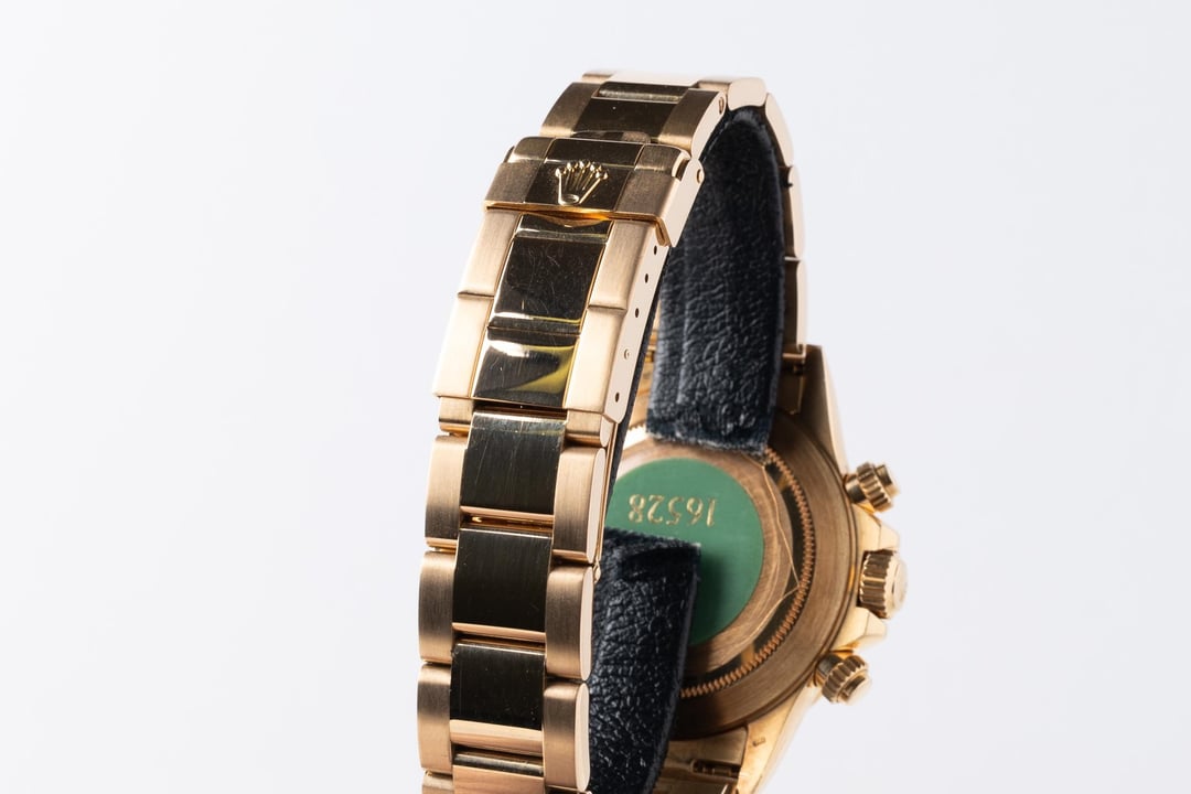 1993 Rolex Cosmograph Daytona 16528 Zenith Champagne Dial - Box and Papers $47,950 This Rolex Daytona reference 16528 with highly coveted Zenith movement in 18K yellow gold and a classic champagne dial is a true neo-vintage stunner. The S5 serial puts the watch at a production year between 1993-1994. The case, in fantastic razor sharp condition, has developed a slight rosy tinge in some portions. Well defined and sharp lugs, a couple of nicks on the top left. Perfect bevels on the bezel, with all numerals in tact. A rash on the bezel between 240 and 400 and the top bevel. Light surface scratches on the bezel and case. The bracelet has been lightly polished and brushed, and has no stretch. Its orig caseback sticker in tact. It comes with box and papers, with its papers dated 11/1999. Serial - Year: S56 serial ~1993/1994 Bracelet - Strap: 78398 18K oyster bracelet with T clasp. 12 links. Fits up to ~7.5” wrist Box - Papers - Accessories: Outer box, inner box, cleaning cloth, oyster booklet, chronometer hang tag, original warranty papers dated 11/1999 Service History: Likely never. Running at -1s/d, 302 amplitude Pictures https://imgur.com/a/16528-CMgboOd Timestamp https://imgur.com/gGFG9Zw Watches will be shipped via FedEx upon receipt of bank wire only. Sorry, no P2P payment platforms due to scams. Zelle with references. Prices are for an outright purchase, no trades preferred. **Inquiries:** [Instagram](http://www.instagram.com/angelcitytime), PM or chat Member of r/watchexchange for years. Excellent references on other platforms and forums which I can provide upon request. Please buy with confidence. All sales are final. Thanks for looking!