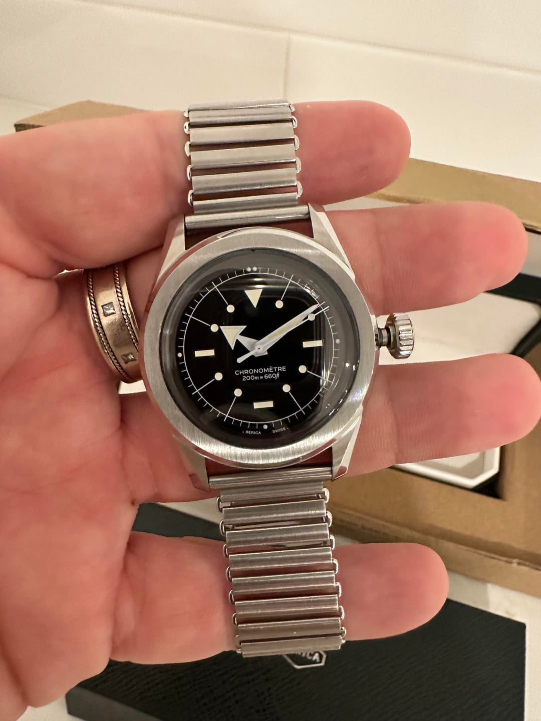 For sale: Serica 6190 Chronometer (MSL) Condition: Excellent — worn sparingly, no major marks, running perfectly. Includes: • Original box • All certificates/papers • Standard-size Bonklip bracelet Price: $1,150 OBO Trade Value: Not currently seeking trades Shipping: FedEx 2-Day Air, paid by the buyer Payment: Zelle preferred, PayPal Friends & Family accepted Fantastic, slim, COSC-certified Serica with the Bonklip — versatile and ready to go. Feel free to reach out with any questions.