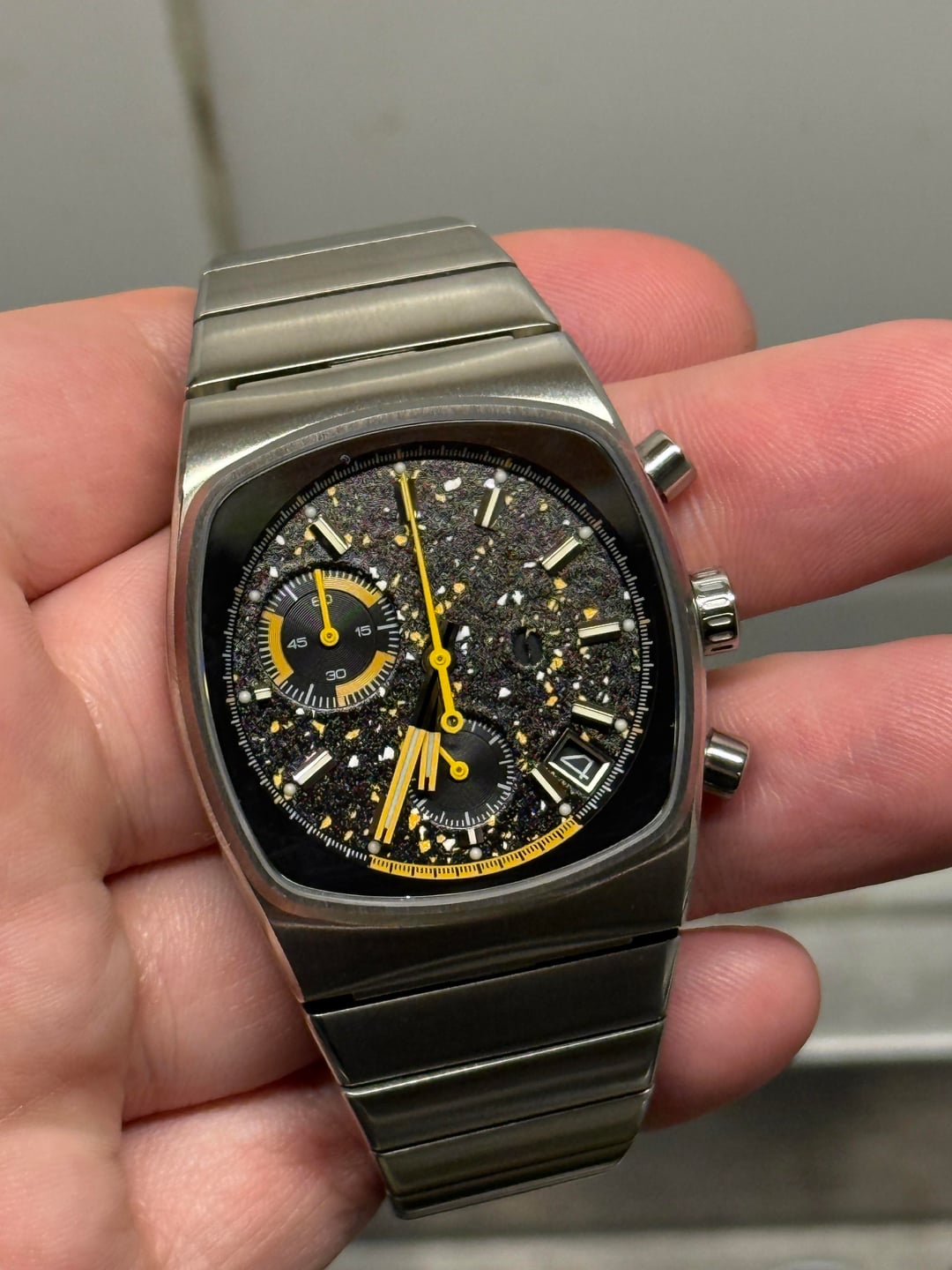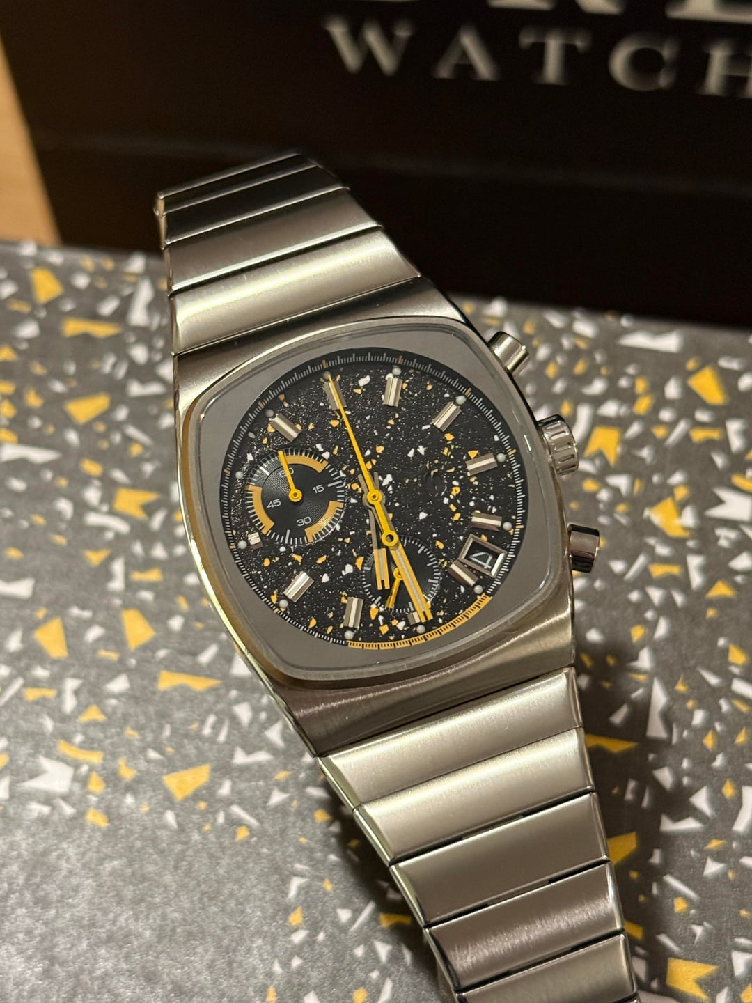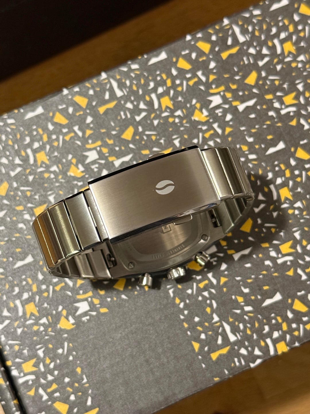 Hi WatchEx! For sale is my Brew Metric, limited New York edition. This watch was limited to 50 units, only sold at Windup Watch Fair in NYC this year. Incredibly fun watch, but went a little crazy with integrated bracelet watches this year, so this is on the chopping block. Legibility is surprisingly good, easy to read at a glance with the yellow tipped hands. (Also, for the lume nuts out there, the white specs on the dial are lumed!) **SPECS**: 36mm diameter, 41.5mm lug to lug, 10.75mm case thickness, 50m water resistance, sapphire crystal, Seiko VK68 Meca-Quartz movement **CONDITION**: Great condition overall, just a few little scuffs on the bracelet links towards the bottom. Only worn a handful of times. **INCLUDED**: Full set, including box, extra links, bracelet sizing tool, Brew branded travel case, and papers. **PRICE**: $550 OBO, paid about $525 at Windup, fully insured shipping with UPS included in price. Shipping CONUS ONLY, sorry no international sales at the moment. Payment via Venmo, Paypal F&F (G&S +3.5% to cover fees) TRADES: Always happy to see what you have for offer, but likely sale-only on this one! Feel free to reach out with any questions or if you need more pictures!