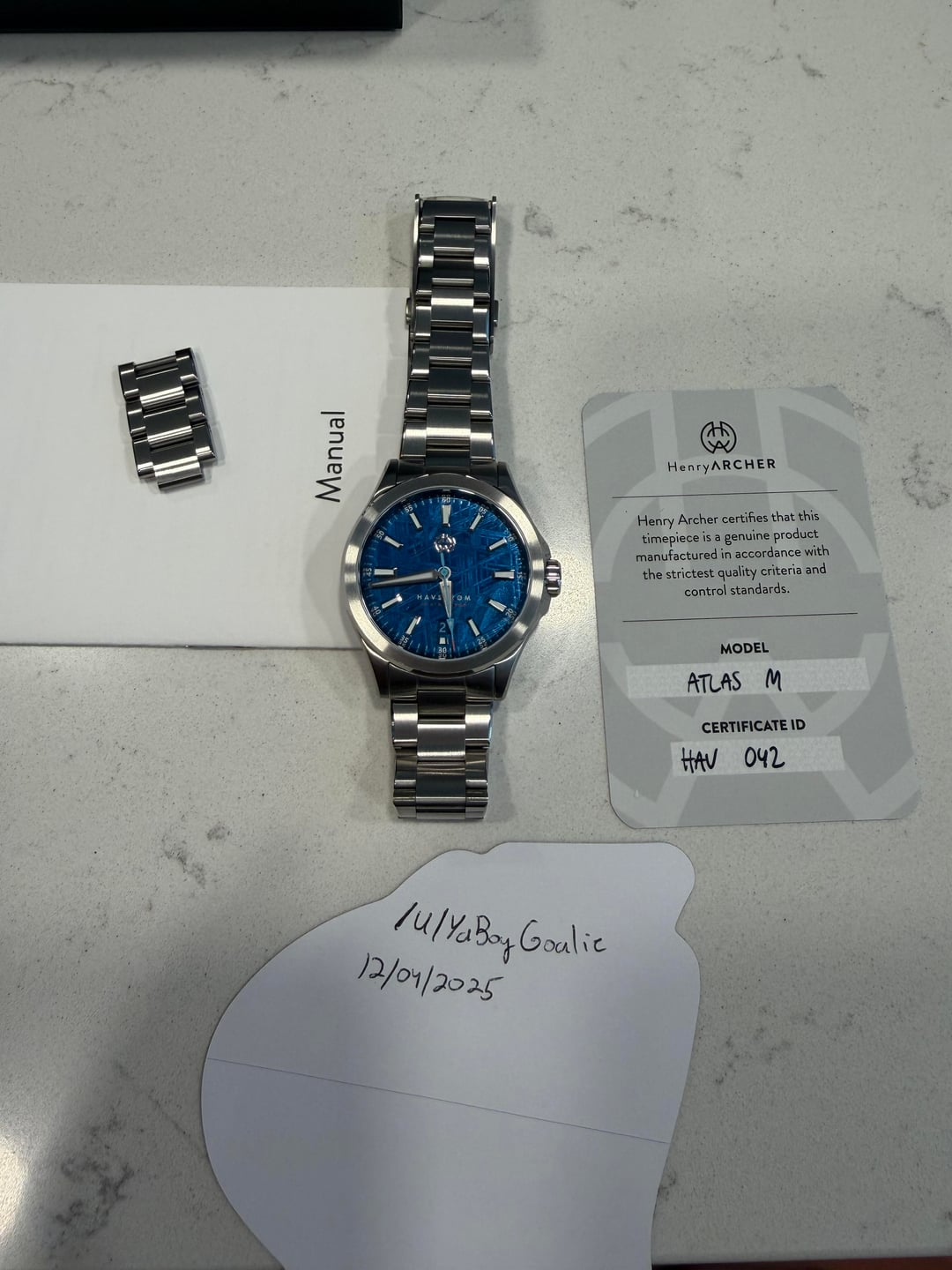 Hello everyone! I am looking to sell my Henry Archer Havstrom! I am new to selling on watch exchange, but I am happy to invoice through PayPal G&S and provide transaction history over on Hardwareswap. Also happy to FaceTime and show you whatever you wanna see in regards to the watch! Bought this watch a few months ago thinking I would wear it all the time and I wore it to one wedding and one dinner and it has been sitting in the case since. There may be some light scratching on the band but to my eye I do not see anything (I am not a huge watch guy so I am unsure exactly what to look for. Please let me know if you need any other pictures/questions etc.... I am local to Boston as well if anyone is local! Thank you!