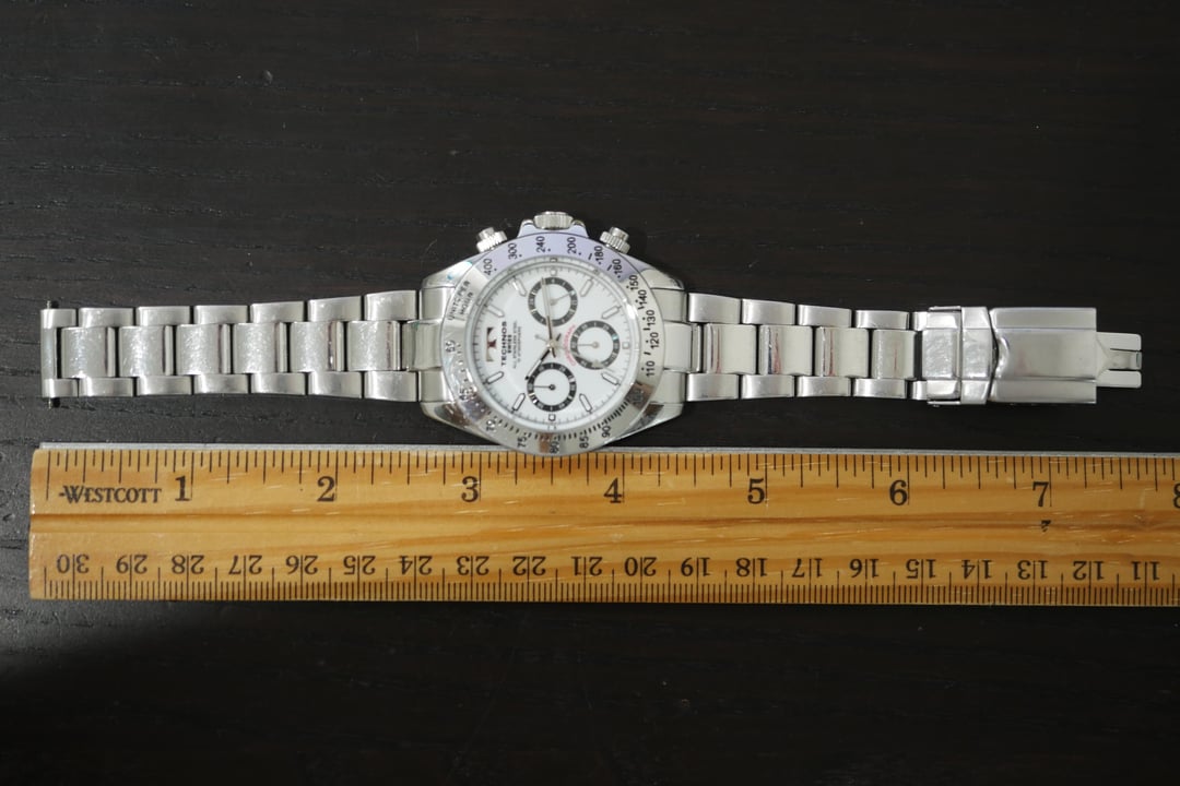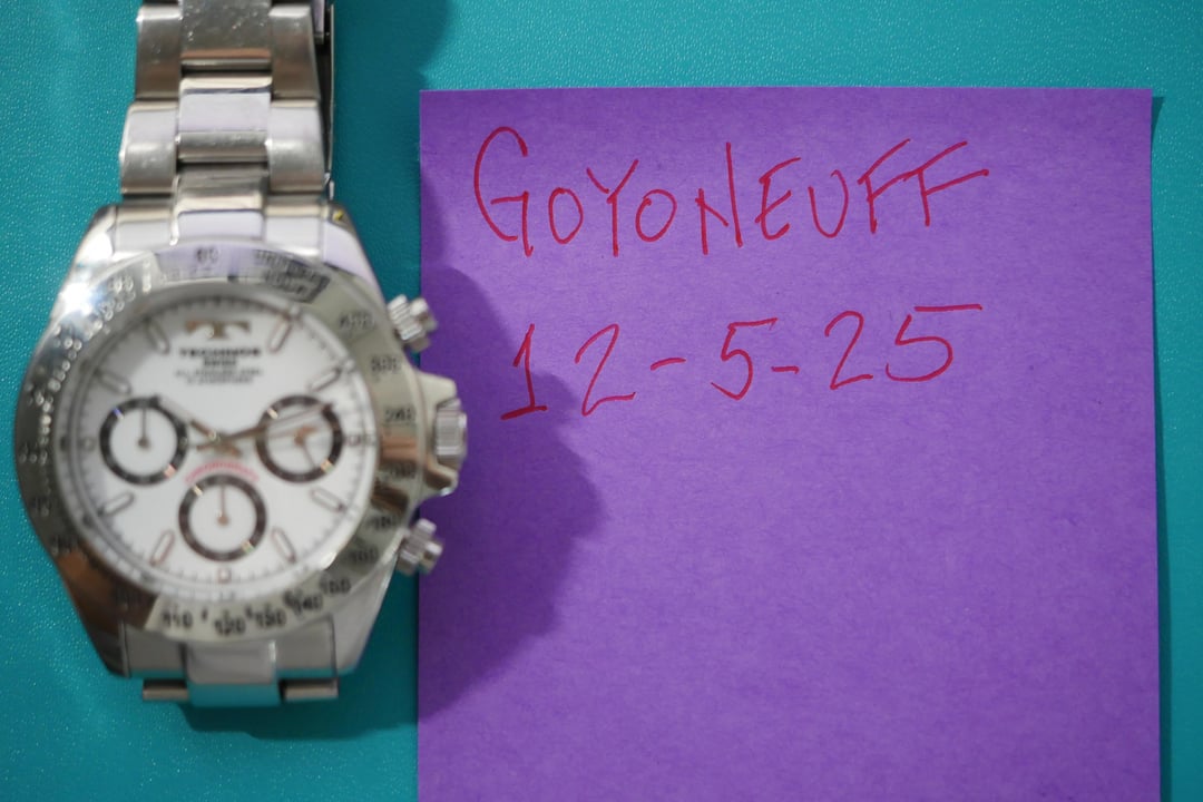 ## ***Thank you for reading this sale ad, and thank you Reddit for the space !*** **Description and condition.** Used, Technos chronograph homage to the Rolex 16520 Daytona white inverted 6 dial. The dial is so nice, deep, nice white, VERY crisp. New movement, battery, and gaskets. I got the watch and stopped working. Sent to my watchmaker and fully refurbished it, sans polishing, I don't like my watches polished. Chronograph functions work. The watch is used, has scratches in the case, bracelet, and crystal. TZ 85 %. Bracelet and watch should fit a 7 ¼ in wrist, please see picture with the watch and a ruler, no more links are included in the sale. I’m a private collector and enthusiast, not a dealer. I do not offer or imply any warranty or returns. I’ve had great transactions here, on WUS (same username), the Rolex Forum (Goyo), and eBay (+250 positive feedback, 100%). Happy to provide references, chat on the phone, via Zoom, or meet in person (Houston, TX metro area). Not affiliated with Rolex, Tudor, or any watch brand. Questions? Please just ask! **Trades.** No trades, thank you! **Price** $150 **Payment and shipping.** $10 shipping in CONUS via USPS or UPS. Payment accepted via Zelle, CashApp, or Venmo. WISE for international buyers (PLEASE, international shipping at buyer’s cost). I’m known for shipping fast, but please keep in mind that I’m a single dad and hobbyist, not a dealer — so if it’s not shipped the same day, it’ll go out within the next two after payment has cleared. Once shipped, I have no control over the carriers, so please be patient and understanding. Thank you very much — read that last part again please 😊