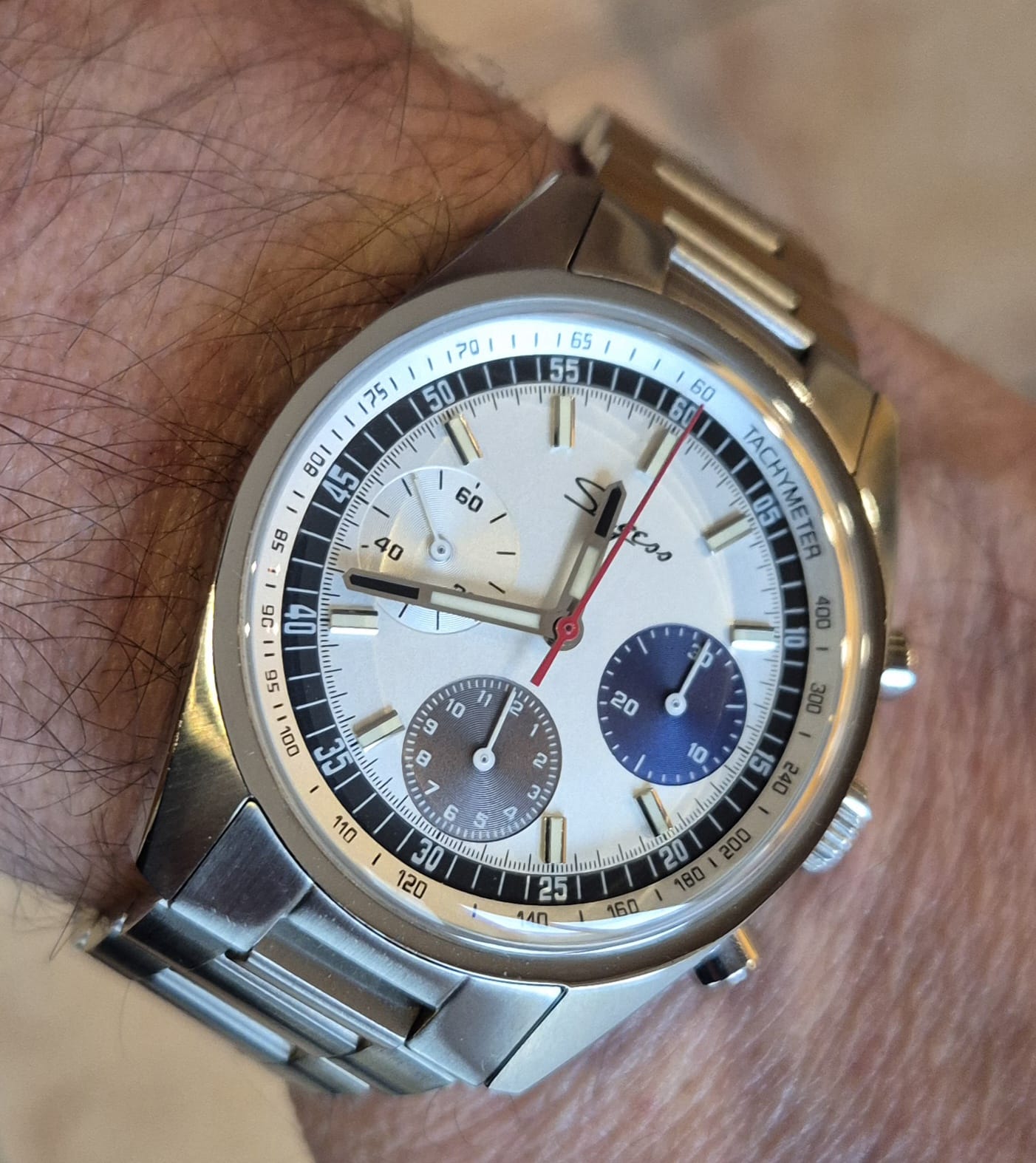 Je propose à la vente cette montre Sugess Chrono Heritage S442, un chronographe mécanique classique inspiré des modèles vintage « El Primero ».