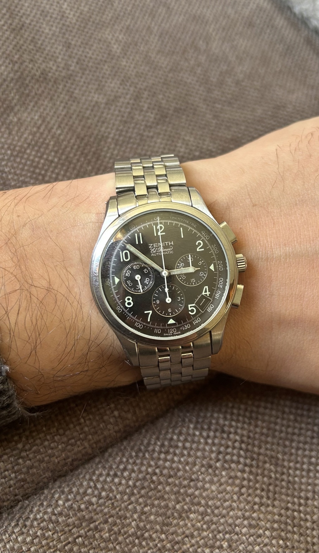 Bonjour Je vends une Zénith El Primero Réf : 02.0500.400 Diamètre 38mm Année 2002 Entièrement d’origine