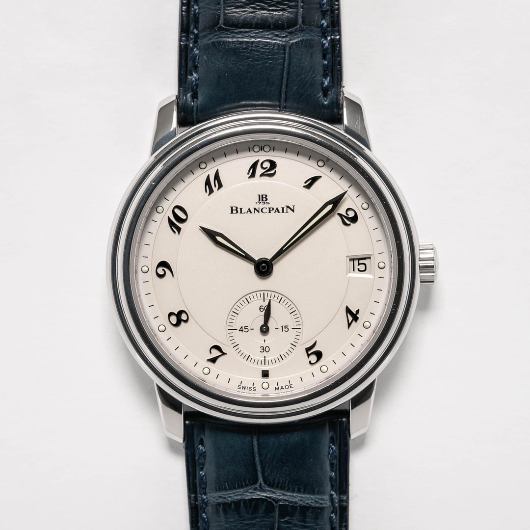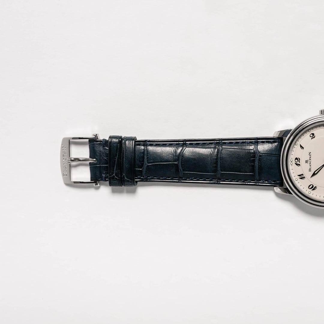 **SPECIFICATIONS** **Brand:** Blancpain **Model:** Ultra-Thin Platinum **Reference:** 1161-3427-55 **Year:** 1990s **Case Number:** No. 12 **Case Material:** Platinum **Diameter:** 36 mm **Lug Width:** 19 mm **Thickness:** 8.8 mm **Lug-to-Lug:** 40.4 mm **Dial:** Cream **Lume:** Tritium **Crystal:** Sapphire **Movement:** Automatic **Caliber:** Blancpain 1161 **Bracelet/Strap:** Blancpain navy alligator strap with signed platinum tang buckle **CONDITION & PERFORMANCE** **Case:** The platinum case shows light wear in the form of a few hairlines, faint scratches, and tiny nicks throughout. The case has seen a light polish, but the lugs remain thick and well-defined. The caseback is fairly clean with just a couple minor hairlines to the brushed finish, and some light wear to the back of the lugs. The brand and serial number engravings remain sharp and crisp. The hallmarks show some fading, but remain legible. **Dial, Hands, & Crystal:** The cream dial and polished sword hands are in nice overall condition. There is a tiny stain at the edge of the dial near the 1 o'clock lume plot. The hands are original tritium-filled units and match the hour markers. Both glow briefly glow when exposed to UV light. The sapphire crystal is squeaky clean and scratch-free. **Bracelet/Strap:** The Blancpain navy alligator strap is in fantastic condition with very little wear. The condition of the Blancpain-signed platinum buckle is consistent with the rest of the case. The brand and hallmark engravings remain crisp and detailed. **Timing & Functions:** The watch has been measured with a timegrapher at six different positions. While resting face up, the rate is +11s/d. All functions including the crown winding, time setting, and quickset date are working as expected. Service history is unknown. **WHAT'S INCLUDED** \- Watch, boxes and instructions. Timestamp: [imgur](https://imgur.com/a/1990s-blancpain-ultra-thin-platinum-ref-1161-3427-55-sFSrsGE) Video: [vimeo](https://vimeo.com/1105381652?share=copy) **PRICE & DELIVERY** I'm asking **$8,900** net to me via wire transfer, Zelle, or PayPal + fees. The price includes expedited shipping via FedEx within the U.S. and internationally. No trades. Feel free to reach out with any questions!