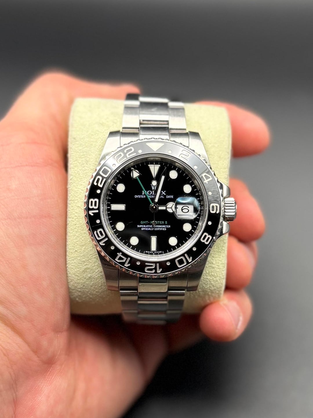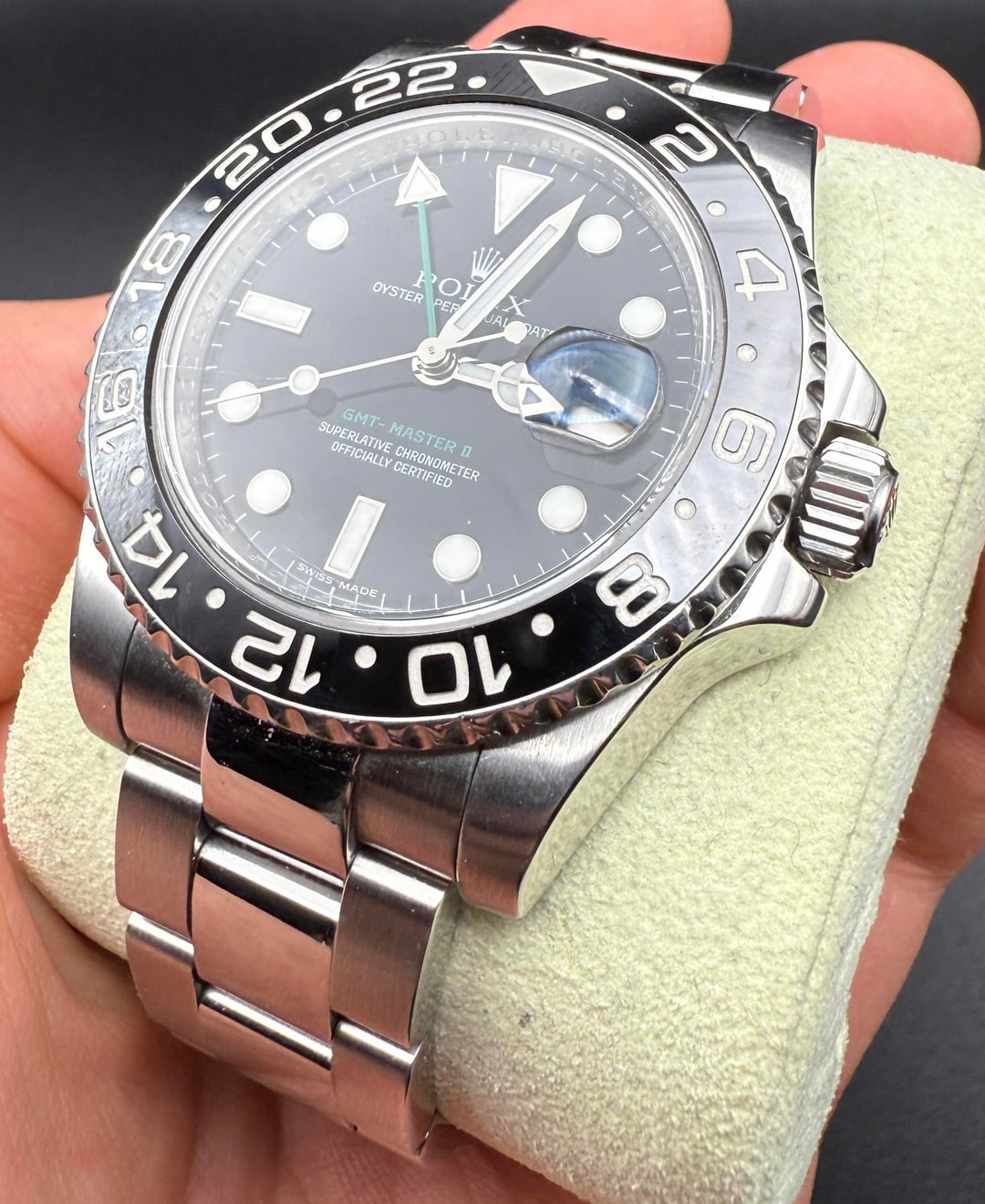 GMT MASTER II REF 116710LN Year: (2008) accessories: -Box -Outer box -factory warranty card -service RSC card (warranty valid until April of 2026) -all links -booklets Needs polish for retail ready (can polish for extra 100) True collectors piece set for only 1️⃣2️⃣.3️⃣+L✈️